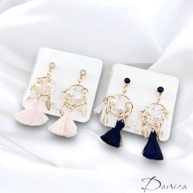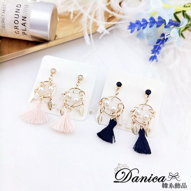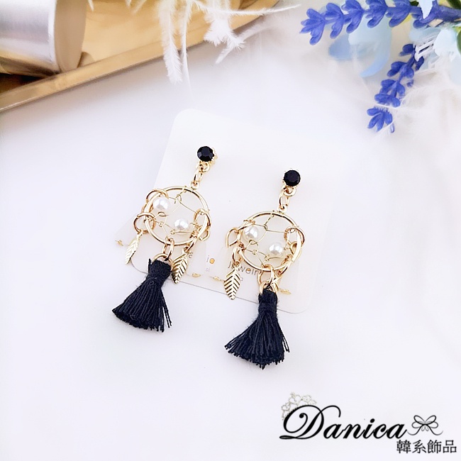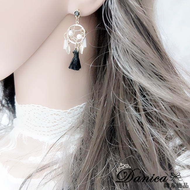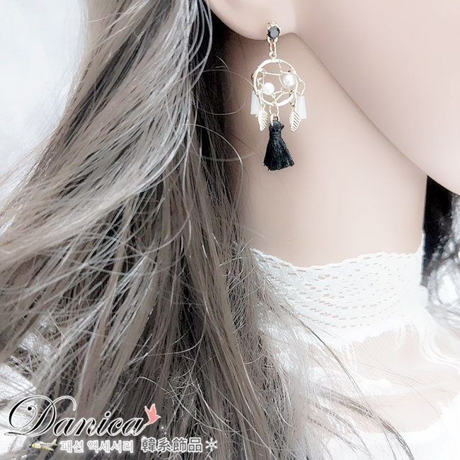 針式 夾式耳環 韓國女神氣質浪漫幾何捕夢網珍珠水鑽流蘇垂墜耳環 K93308 台灣出貨Danica 韓系飾品 韓國連線黑色針式|白色針式|黑色金球螺旋夾式(無耳洞配戴)|白色三角彈簧夾式(無耳洞配戴)|粉膚金球螺旋夾式(無耳洞配戴)|粉膚針式Danica 韓系飾品 耳環