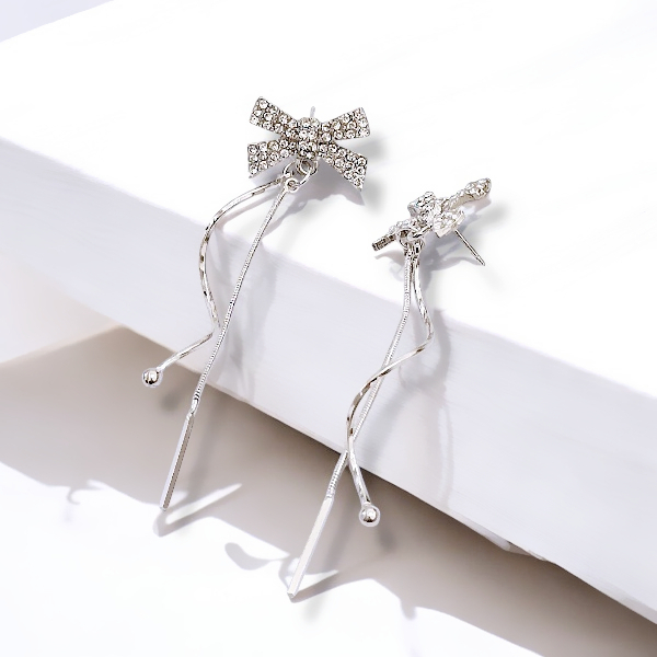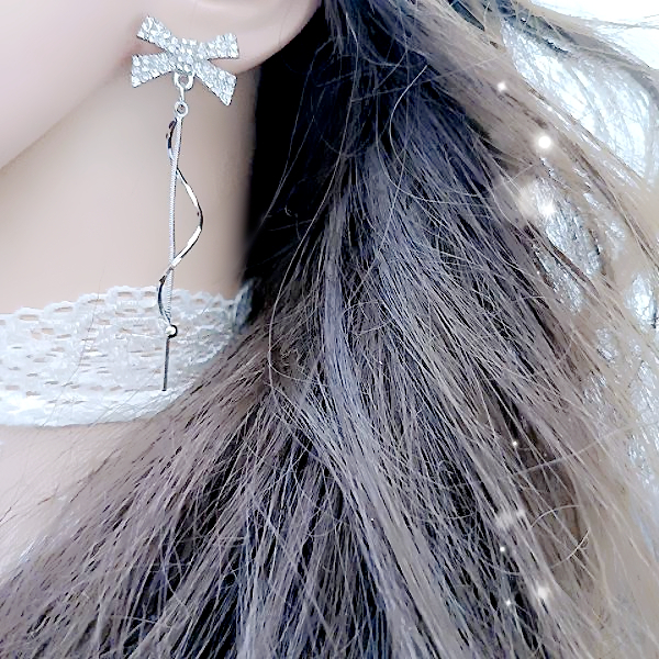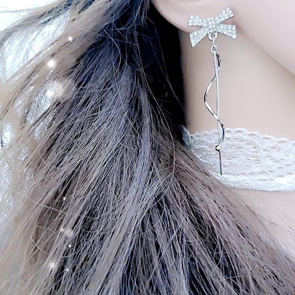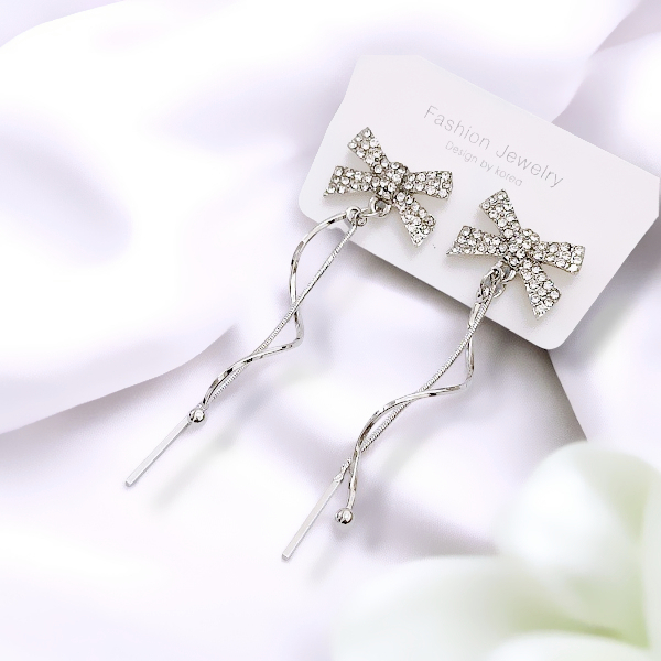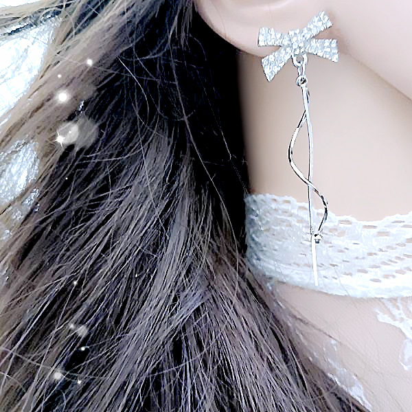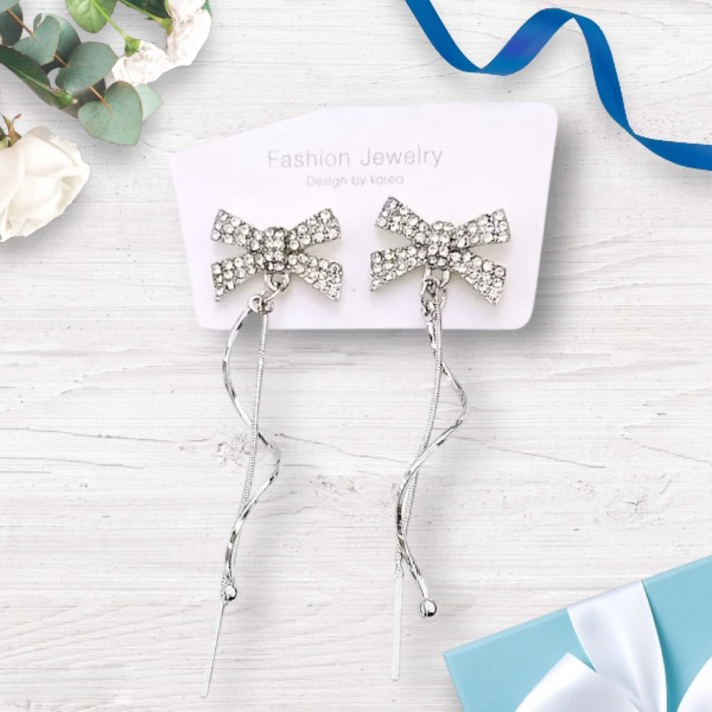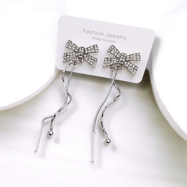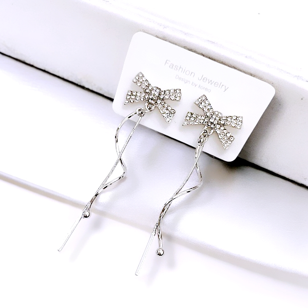 針式 夾式耳環 韓國少女氣質浪漫蝴蝶結水鑽流蘇耳環 K94309 台灣出貨 Danica 韓系飾品 韓國連線銀色針式|銀色夾式(無耳洞配戴)Danica 韓系飾品 耳環