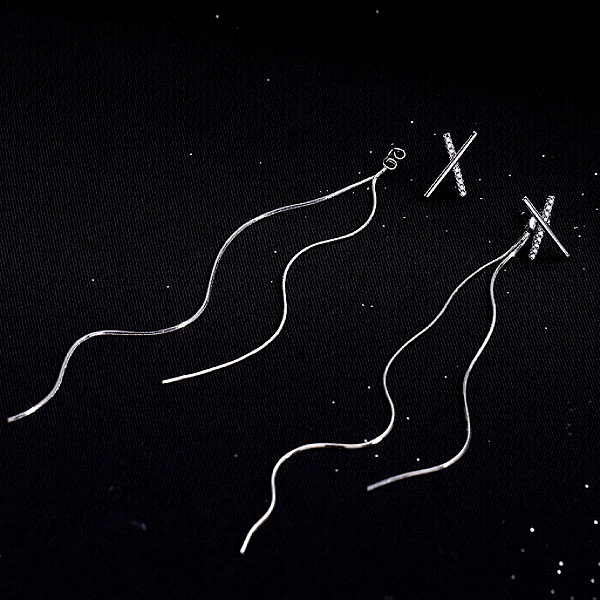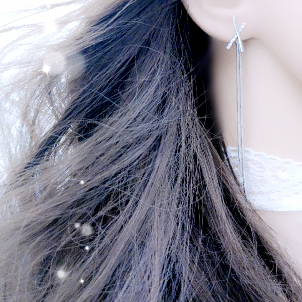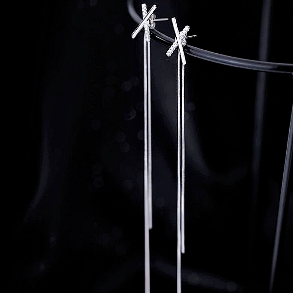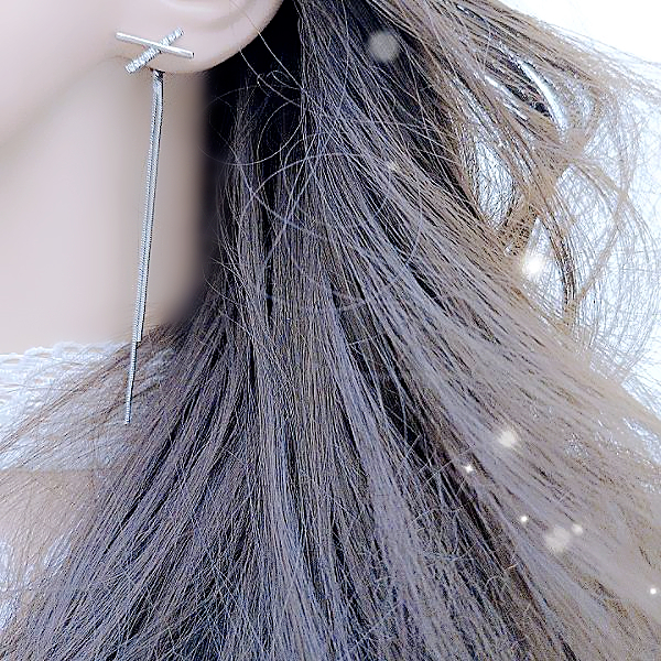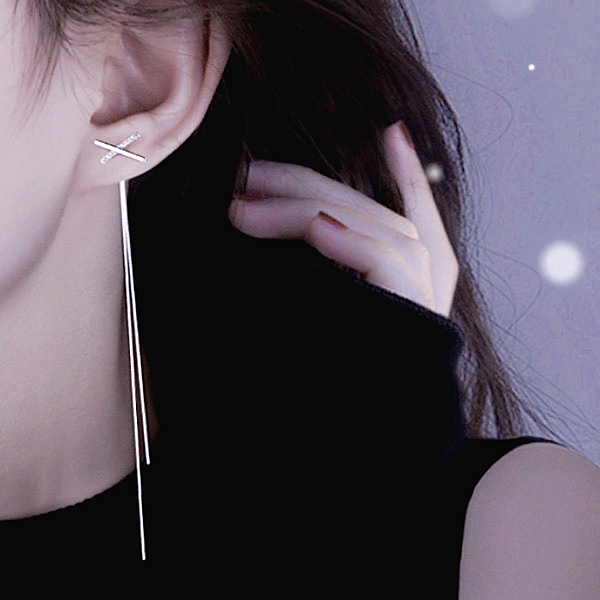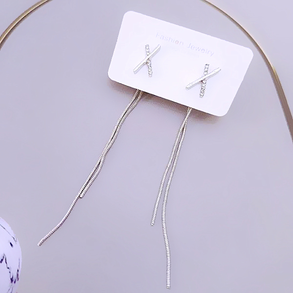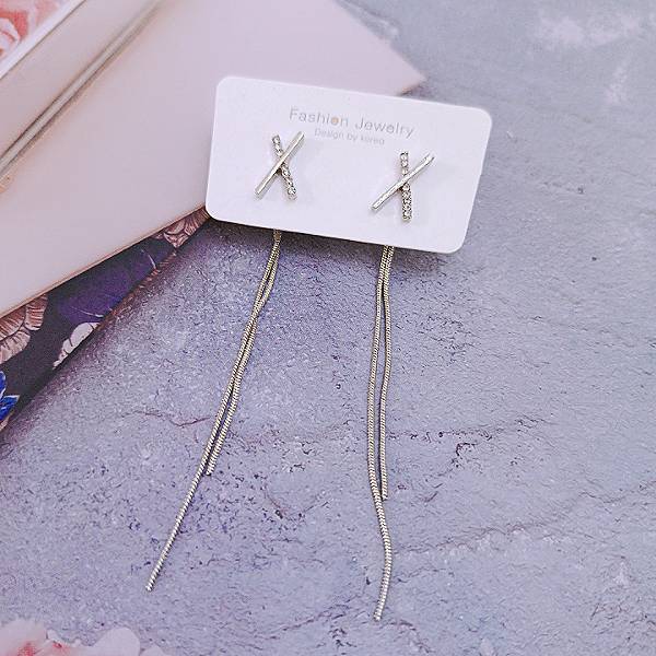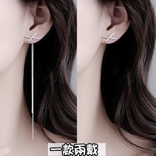 針式 韓國女神氣質浪漫簡約百搭交叉X水鑽流蘇耳環 後掛耳環 K94199 台灣出貨 Danica 韓系飾品 韓國連線銀色針式Danica 韓系飾品 耳環