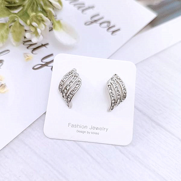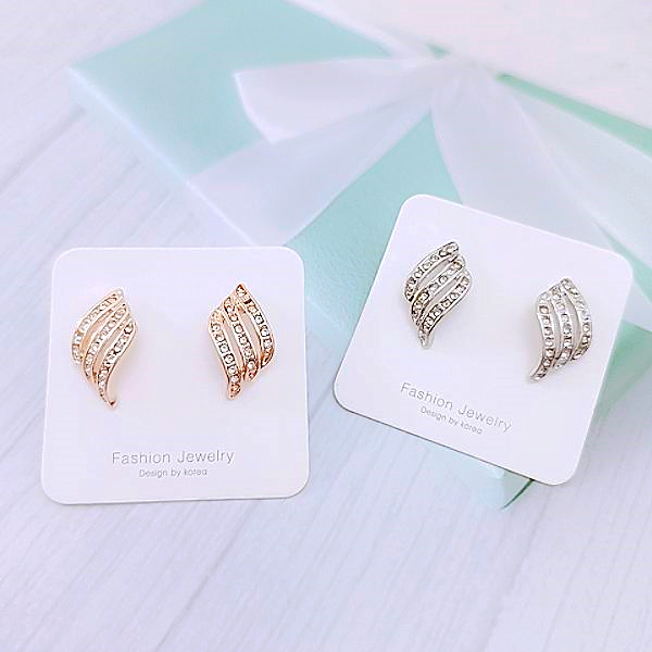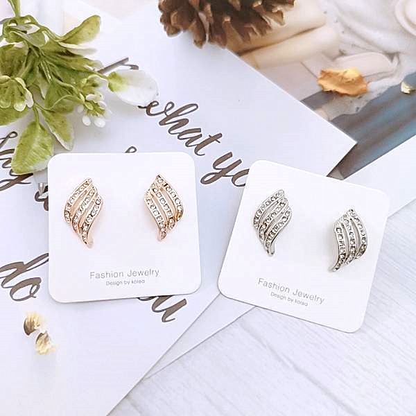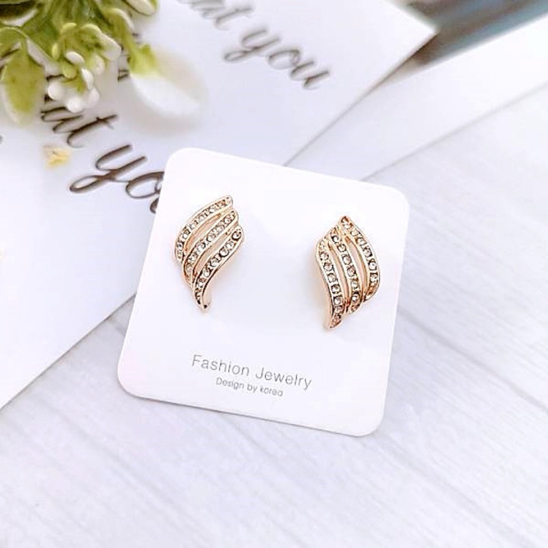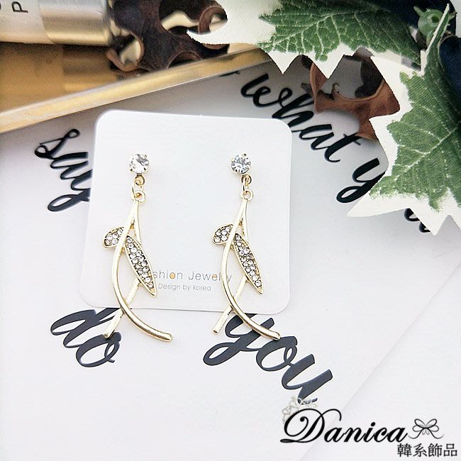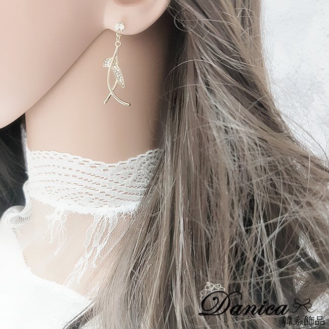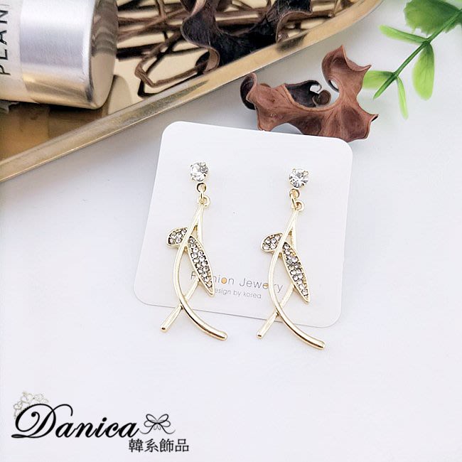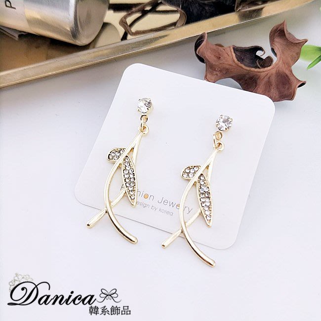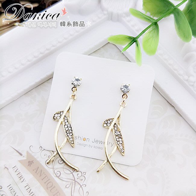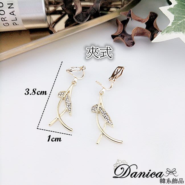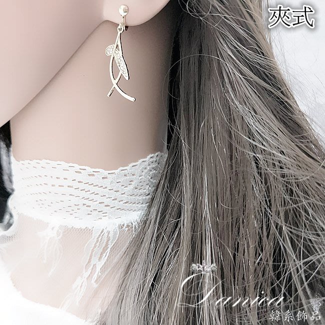 925銀針 夾式耳環 韓國女神氣質浪漫仙女交叉葉子水鑽耳環 K93653 批發價 Danica 韓系飾品金色針式|金色夾式(無耳洞配戴)Danica 韓系飾品 耳環