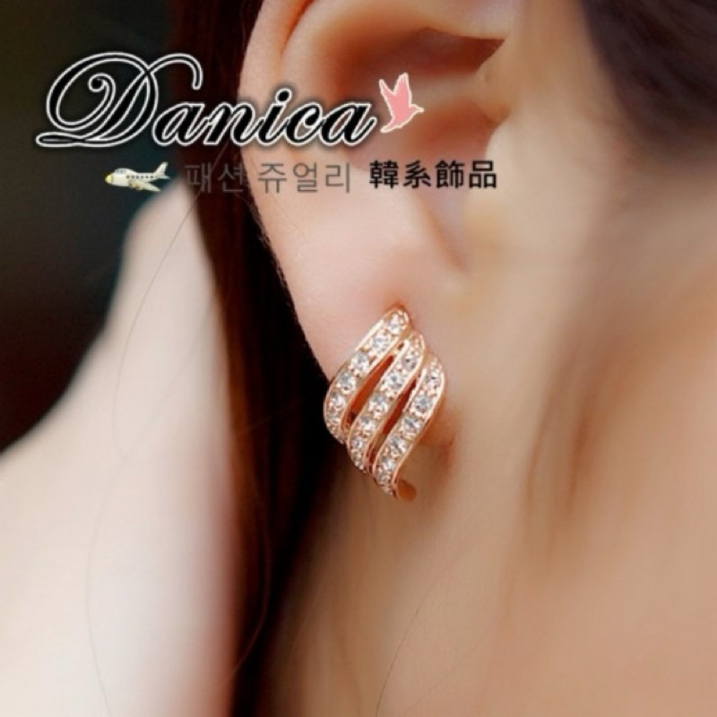 針式 夾式耳環 韓國女神氣質名媛風跑趴幾何流線水鑽耳環 K92450 台灣出貨 Danica 韓系飾品 韓國連線銀色夾式(無耳洞配戴)|玫瑰金夾式(無耳洞配戴)|銀色針式|玫瑰金針式Danica 韓系飾品 耳環