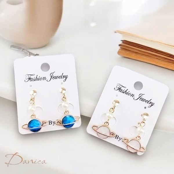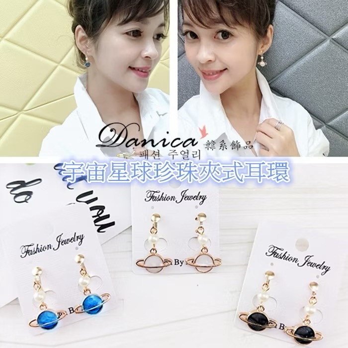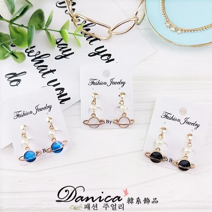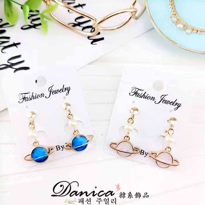 針式 夾式耳環 韓國少女氣質甜美百搭宇宙星球珍珠垂墜耳環 K92618 台灣出貨 Danica 韓系飾品 韓國連線1號藍色夾式(無耳洞配戴)|2號白色夾式(無耳洞配戴)|3號黑色夾式(無耳洞配戴)|1號藍色代改針式|2號白色代改針式|3號黑色代改針式Danica 韓系飾品 耳環