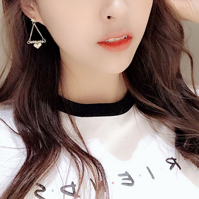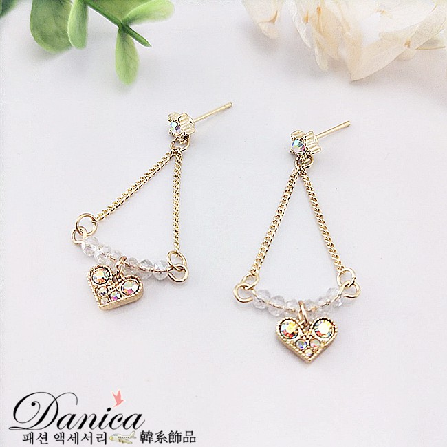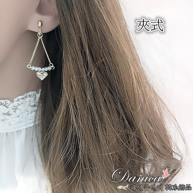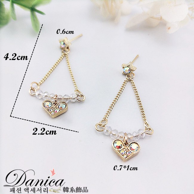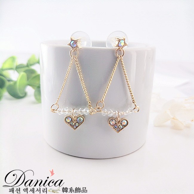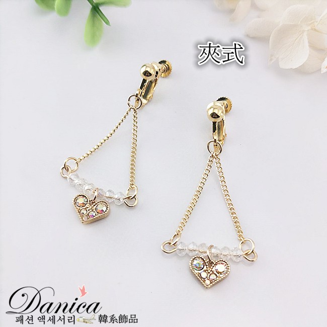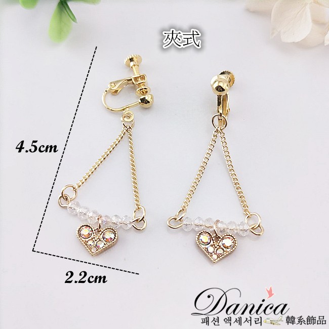 針式 夾式耳環 韓國少女氣質炫彩幾何愛心星星水鑽垂墜耳環 K93211 台灣出貨 Danica 韓系飾品 韓國連線針式|夾式(無耳洞配戴)Danica 韓系飾品 耳環