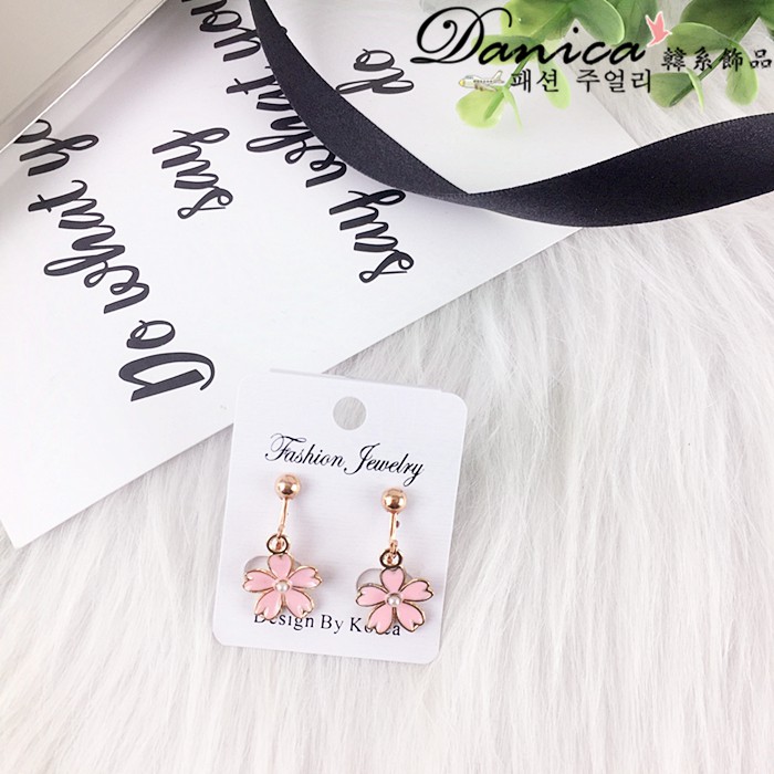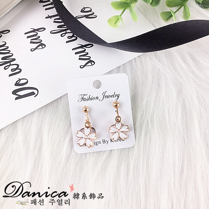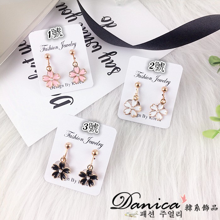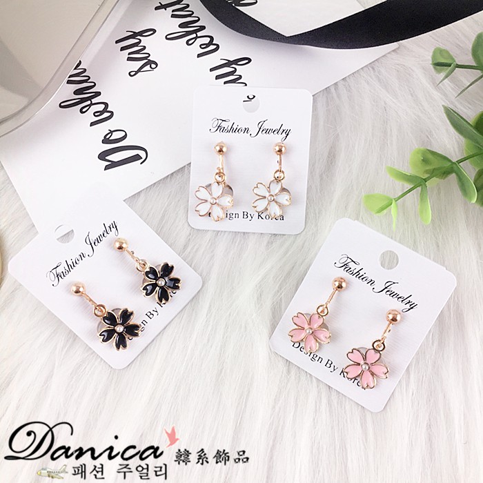 針式 夾式耳環 韓國少女氣質甜美百搭簡約櫻花飄飄垂墜耳環 K91590 台灣出貨 Danica韓系飾品 韓國連線1號粉花夾式(無耳洞配戴)|2號白花夾式(無耳洞配戴)|3號黑花夾式(無耳洞配戴)|1號粉花針式|2號白花針式|3號黑花針式Danica 韓系飾品 耳環