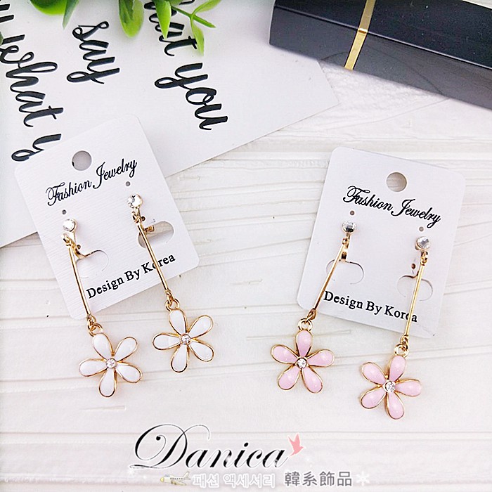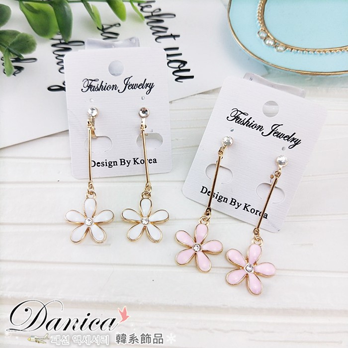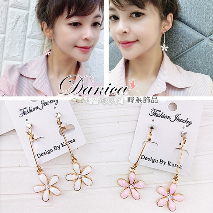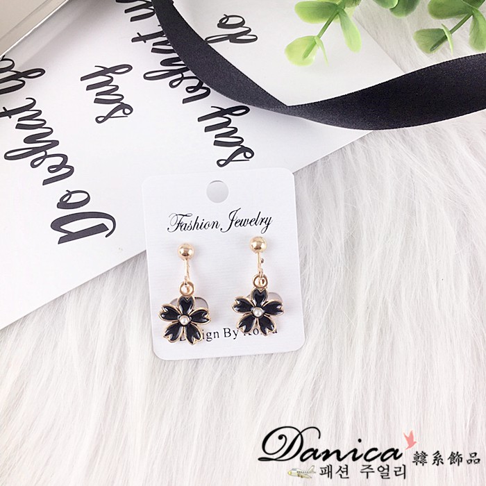 針式 夾式耳環 韓國女神氣質甜美小香風浪漫花朵垂墜耳環 K92574 台灣出貨 Danica 韓系飾品 韓國連線粉花夾式(無耳洞配戴)|白花夾式(無耳洞配戴)|黑花夾式(無耳洞配戴)|粉花針式|白花針式|黑花針式Danica 韓系飾品 耳環