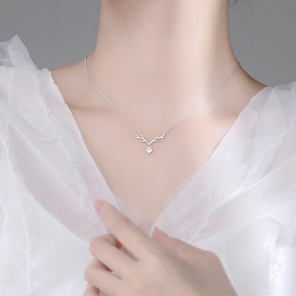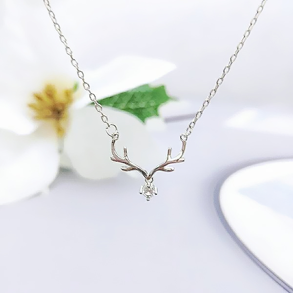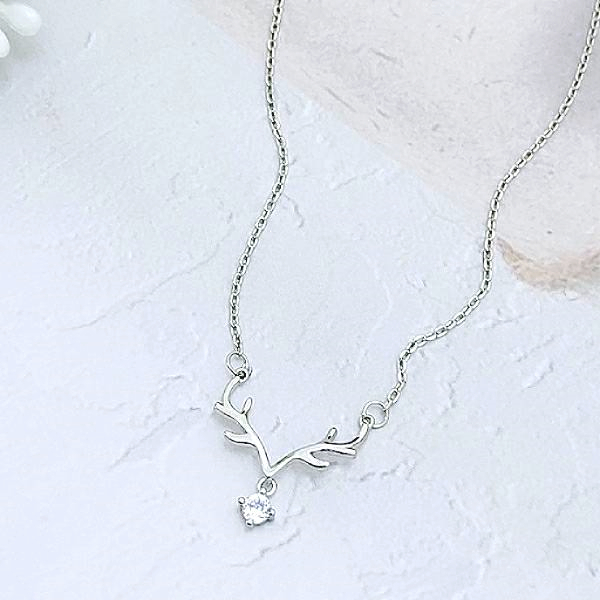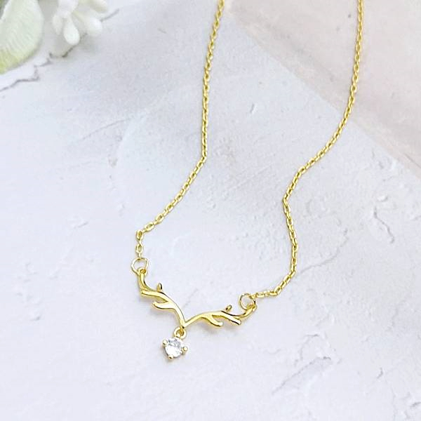 項鍊 韓國女神氣質甜美百搭簡約微鑲鹿角翅膀鋯石項鍊 鎖骨鍊 K2596 台灣出貨 Danica 韓系飾品 韓國連線金色|銀色Danica 韓系飾品 耳環