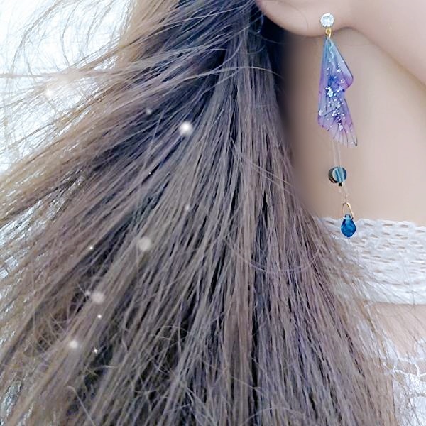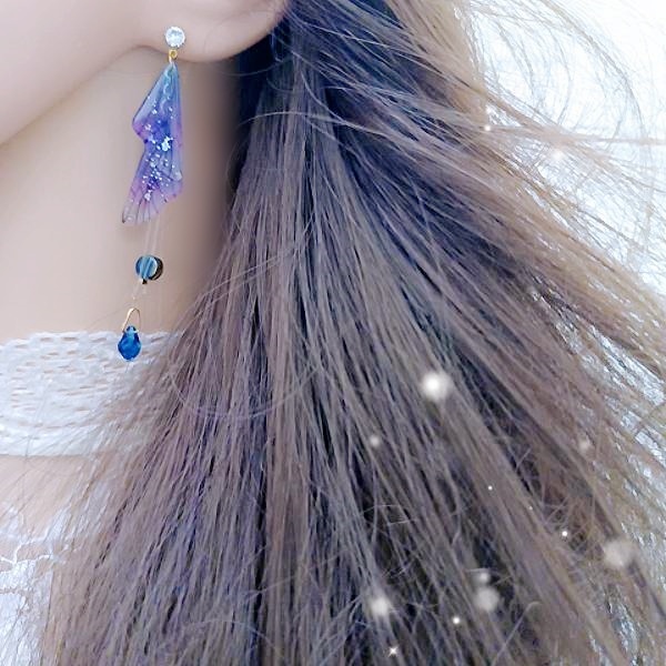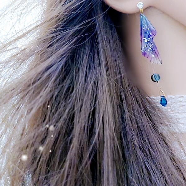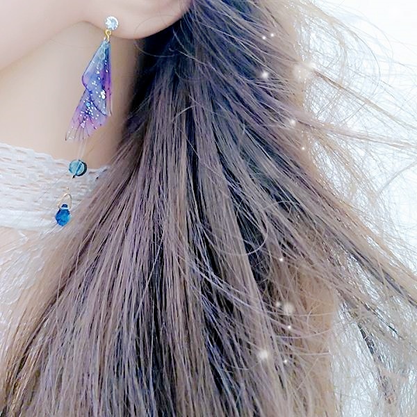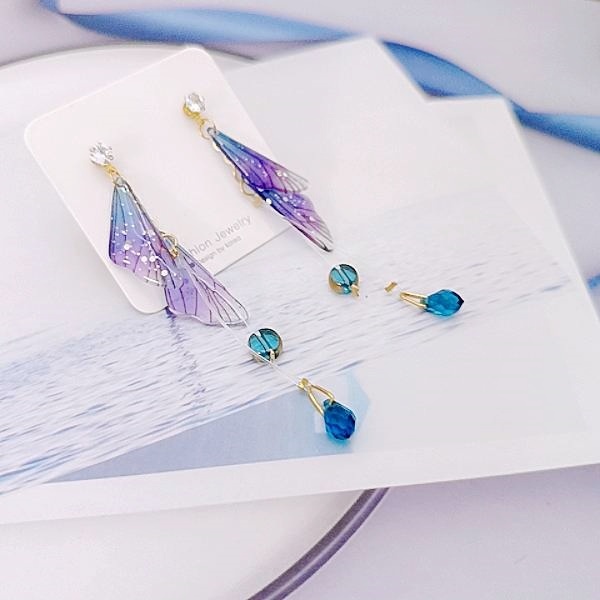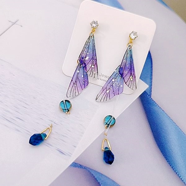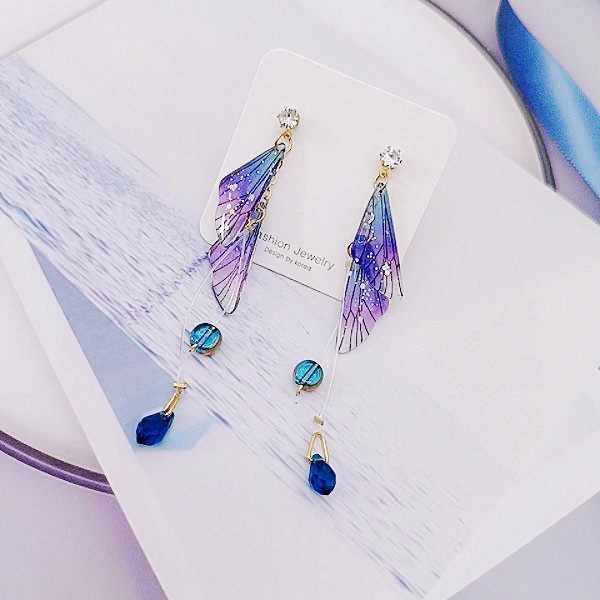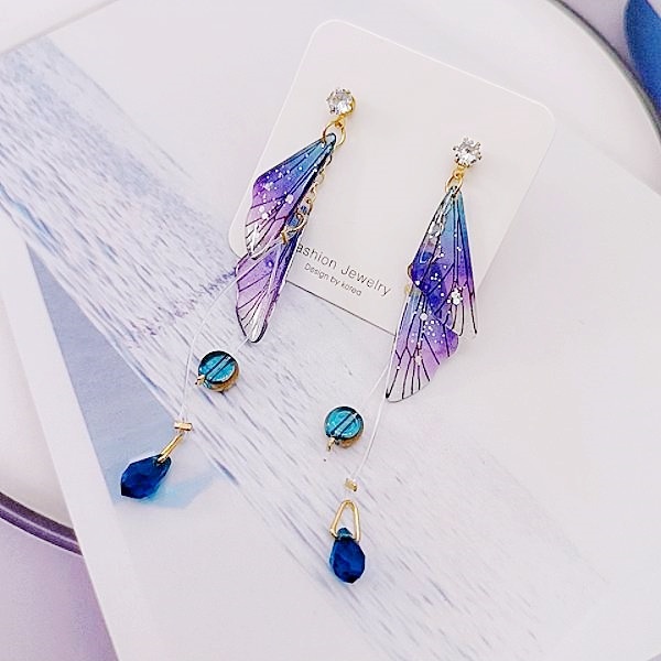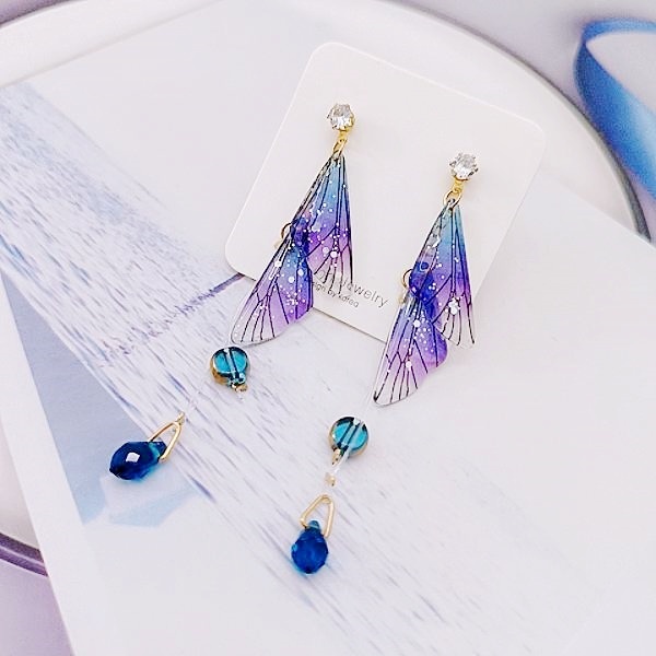 925銀針 夾式耳環 韓國仙女氣質浪漫幾何翅膀垂墜耳環 流蘇耳環 K94233 台灣出貨 Danica 韓系飾品紫藍針式|紫藍夾式(無耳洞配戴)Danica 韓系飾品 耳環