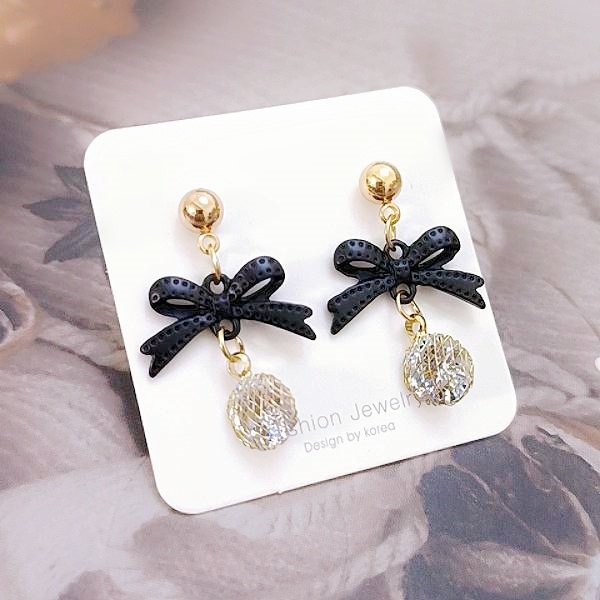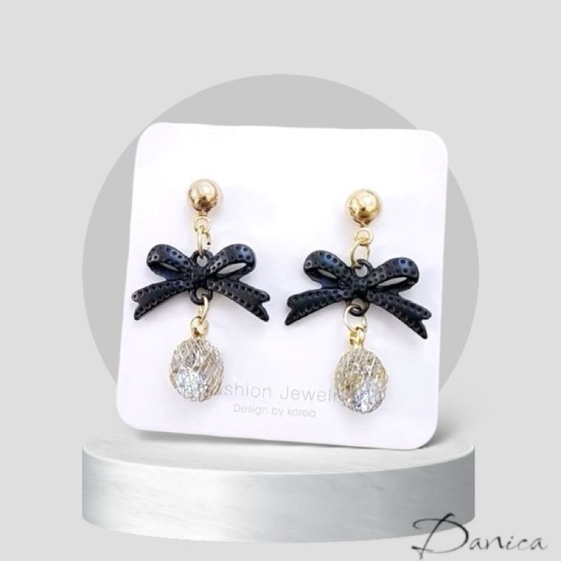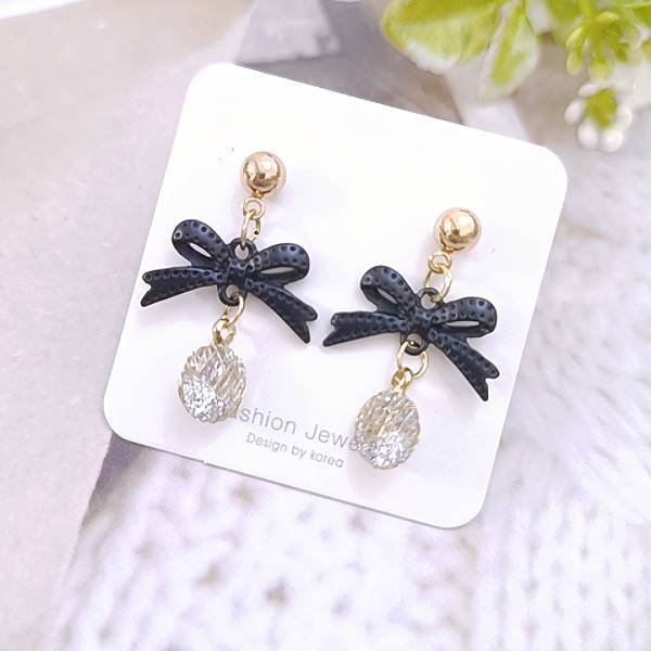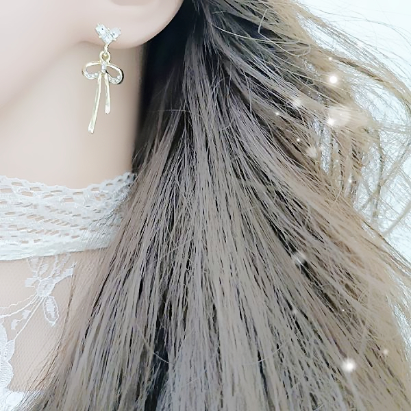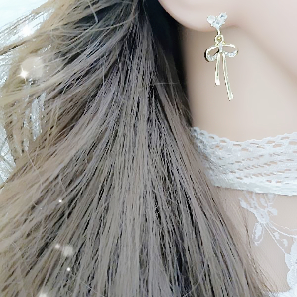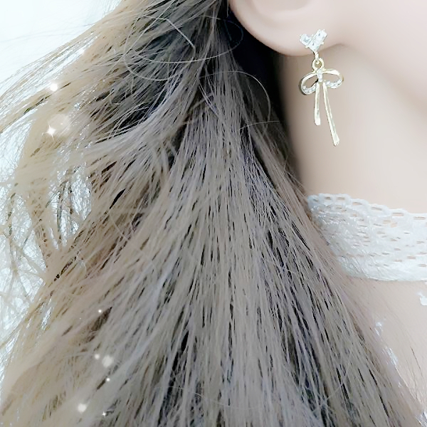 針式 夾式耳環 韓國女神氣質浪漫蝴蝶結鋯石垂墜耳環 K94227 台灣出貨 Danica 韓系飾品 韓國連線如圖針式|如圖夾式(無耳洞配戴)Danica 韓系飾品 耳環