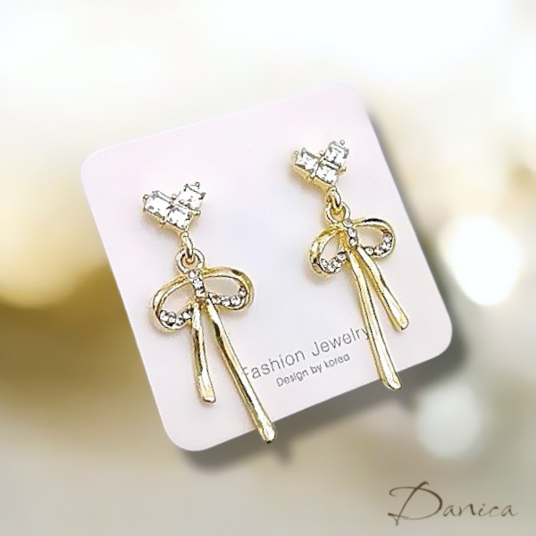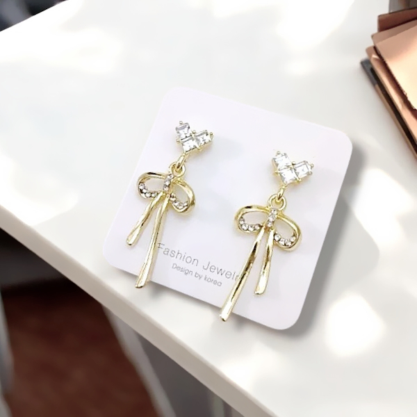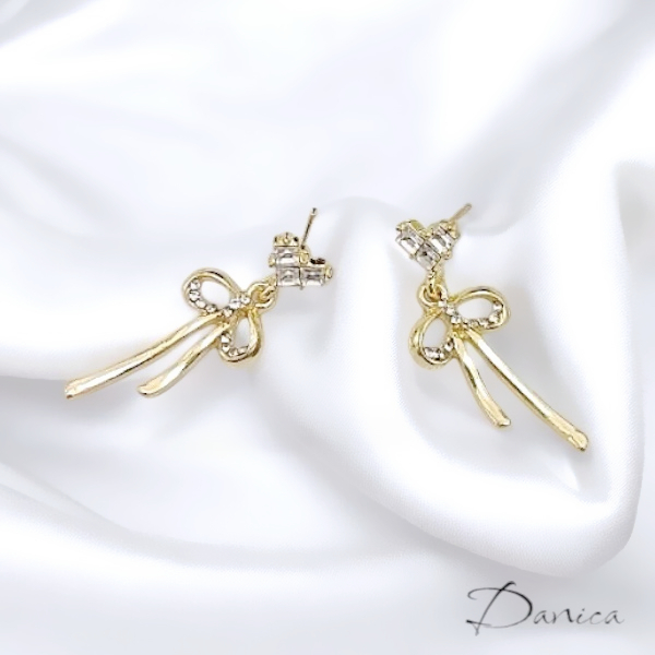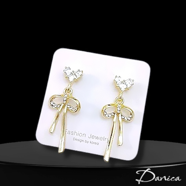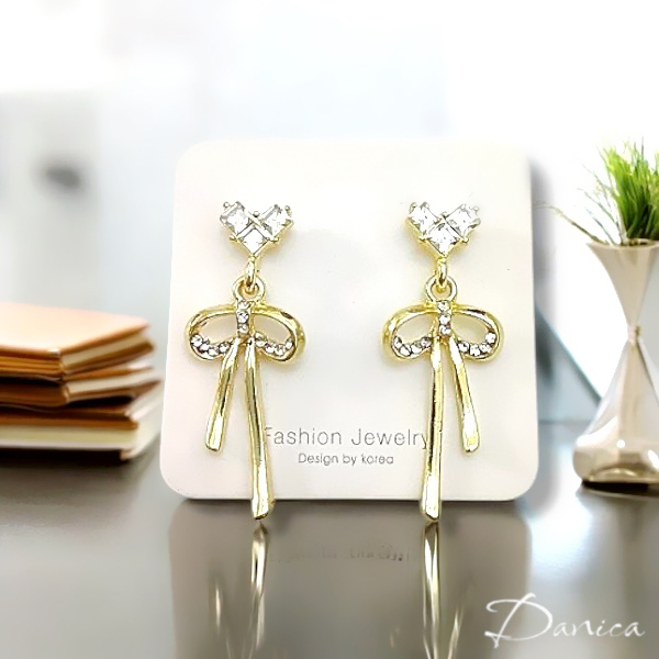 針式 韓國女神氣質輕奢浪漫愛心蝴蝶結水鑽垂墜耳環 K94282 台灣出貨 Danica 韓系飾品 韓國連線金色針式Danica 韓系飾品 耳環
