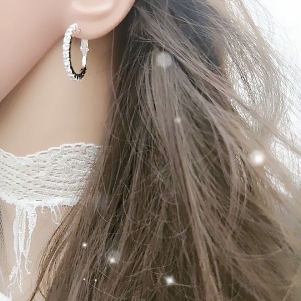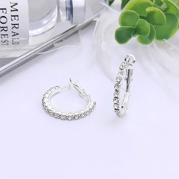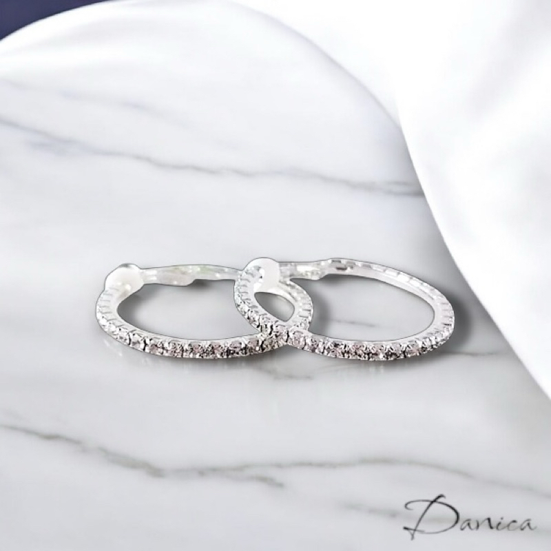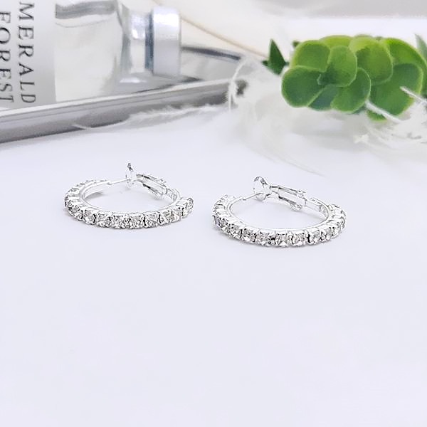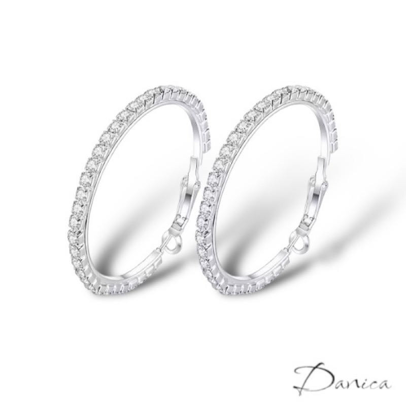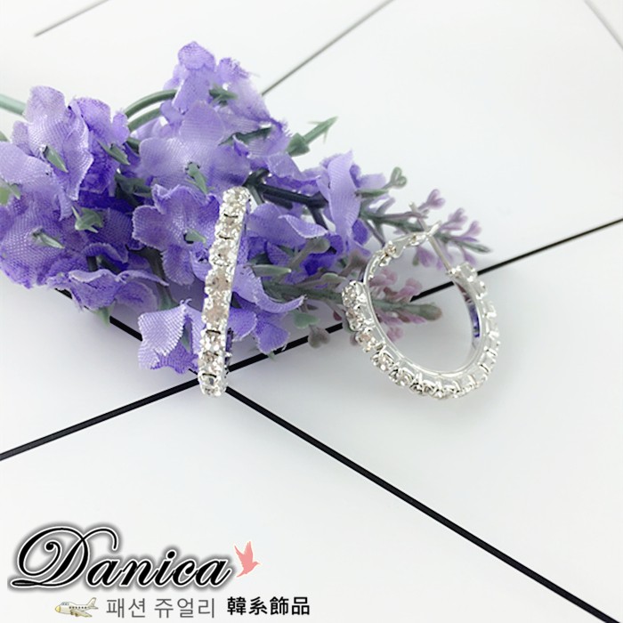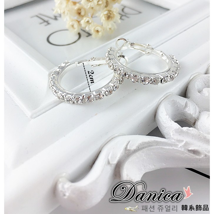 針式 夾式耳環 韓國女神氣質百搭萬年不敗款2CM圓型抓鑽水鑽耳環 圈圈耳環K91130 台灣出貨 Danica 韓系飾品如圖2CM針式|如圖2CM夾式耳環(無耳洞配戴)Danica 韓系飾品 耳環