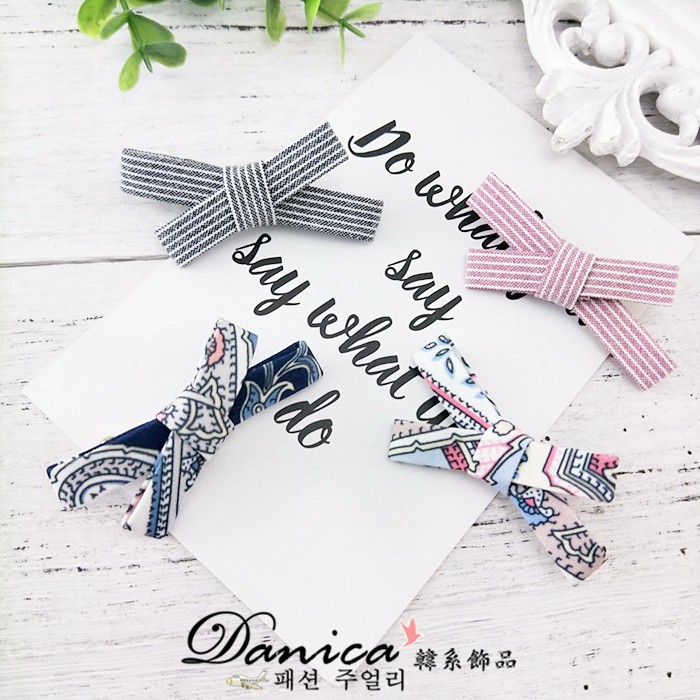 髮夾 韓國少女甜美手作法式海洋風條紋圖騰蝴蝶結鴨嘴夾 髮夾 K8027 台灣現出 Danica 韓系飾品1號|2號|3號|4號Hair Clips & Hair PinsDanica 韓系飾品 耳環