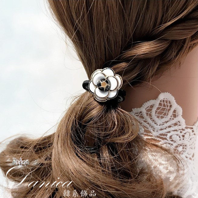 髮束 韓國女神氣質浪漫小香風經典山茶花玫瑰髮束 K7040 台灣出貨 Danica 韓系飾品 韓國連線黑花|白花Hair Ties, Ribbons & ScrunchiesDanica 韓系飾品 耳環