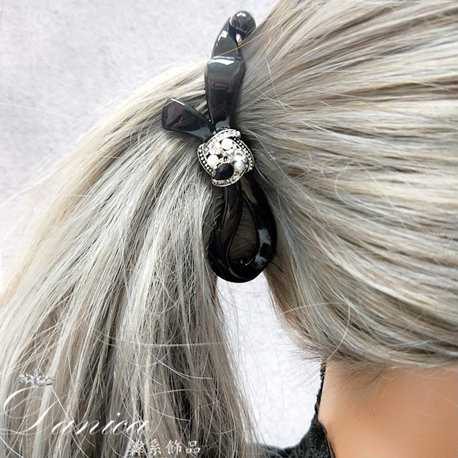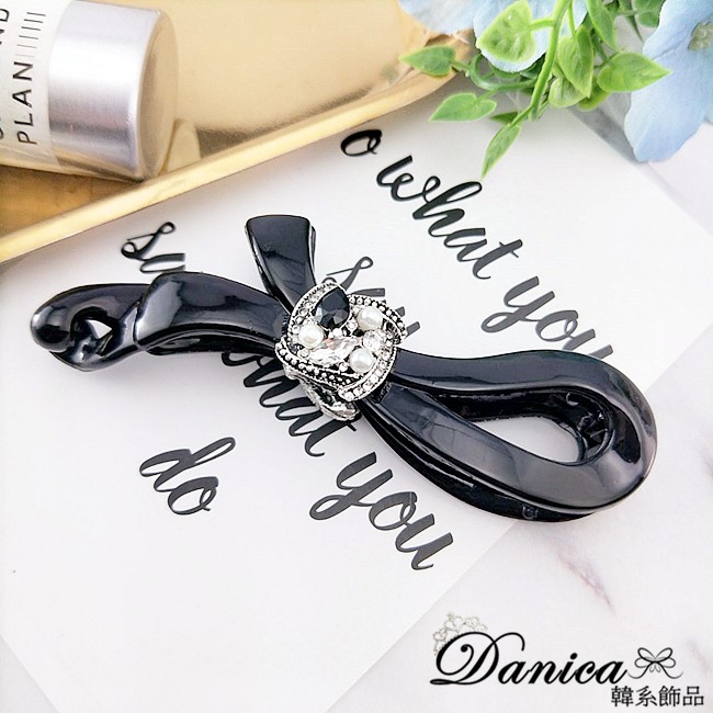 香蕉夾 韓國女神魅力小香風璀璨輕奢法式蝴蝶結珍珠水鑽香蕉夾 馬尾夾 K8270 台灣出貨 Danica 韓系飾品如圖Hair Clips & Hair PinsDanica 韓系飾品 耳環