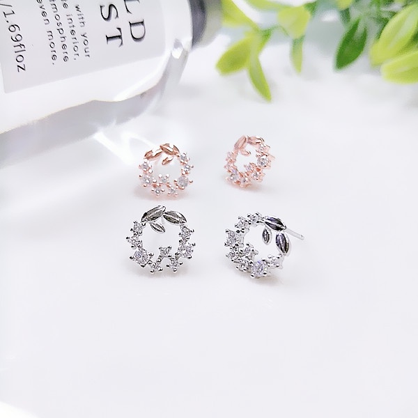925銀針 夾式耳環 韓國女神氣質浪漫公主微鑲花圈鋯石耳環 A0008 台灣出貨 Danica 韓系飾品 韓國連線銀色針式|玫瑰金針式|銀色矽膠u型夾式(無耳洞配戴)|玫瑰金矽膠u型夾式(無耳洞配戴)Danica 韓系飾品 耳環