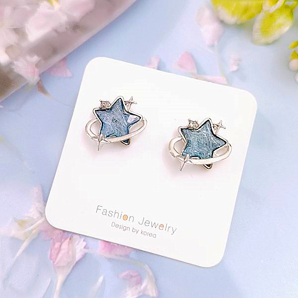 925銀針 夾式耳環 韓國女神氣質浪漫設計感星空宇宙寶石水鑽耳環 K94146 台灣出貨 Danica 韓系飾品
