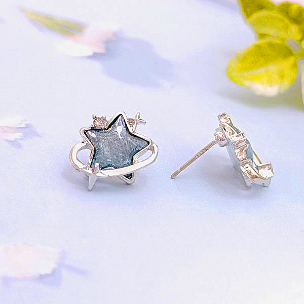 925銀針 夾式耳環 韓國女神氣質浪漫設計感星空宇宙寶石水鑽耳環 K94146 台灣出貨 Danica 韓系飾品如圖針式|如圖夾式(無耳洞配戴)Danica 韓系飾品 耳環