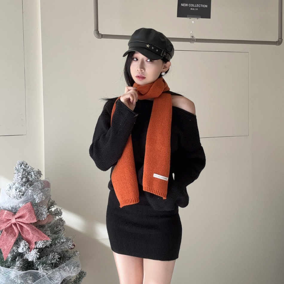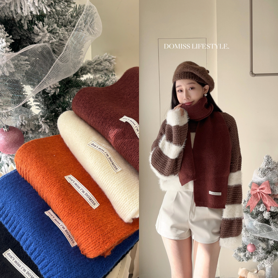 DM自訂-DOMISS別錯過車標羊絨圍巾 披肩 訂製款圍巾 (現貨)米白色|安格拉紅|黑色|灰色|寶藍色|南瓜橘DOMISS 朵蜜絲