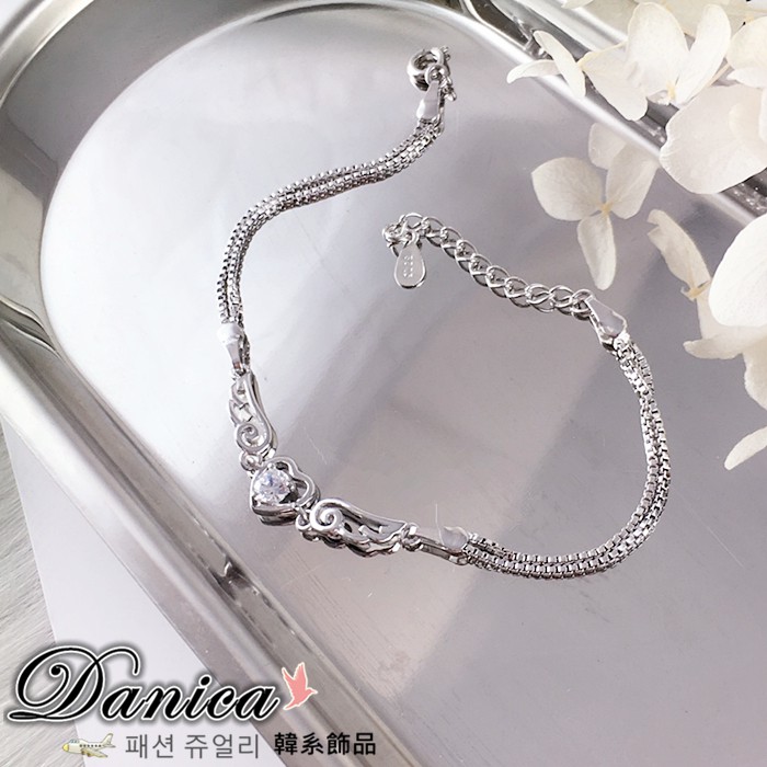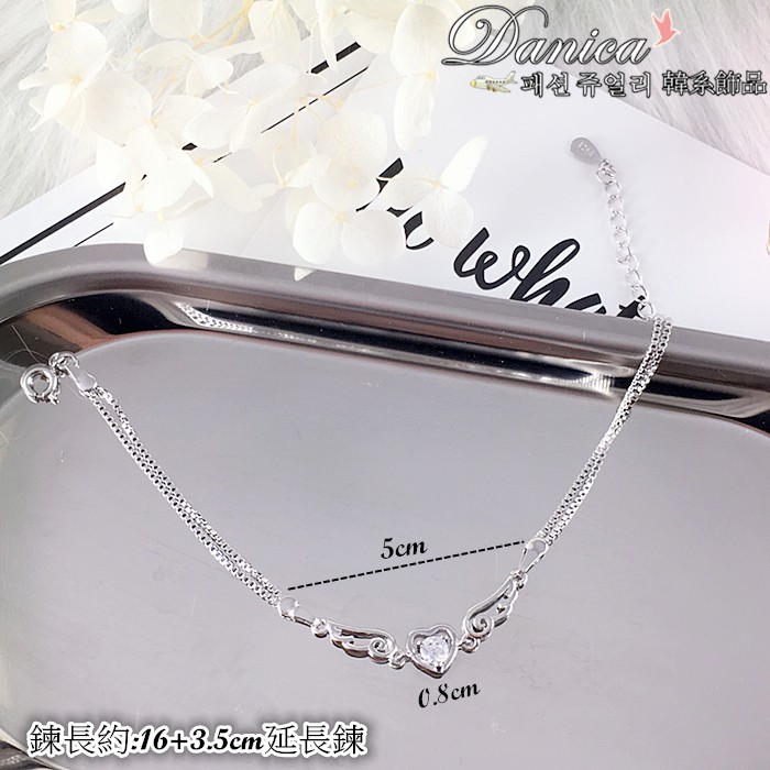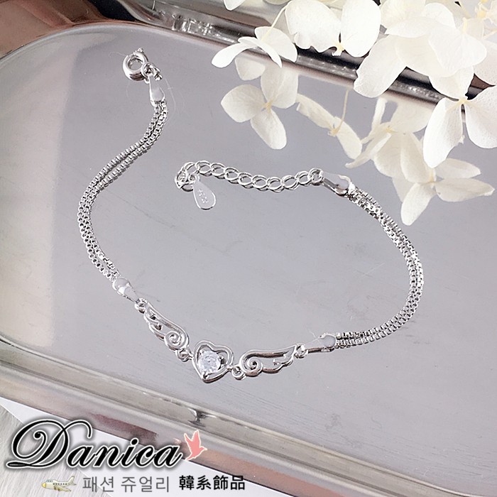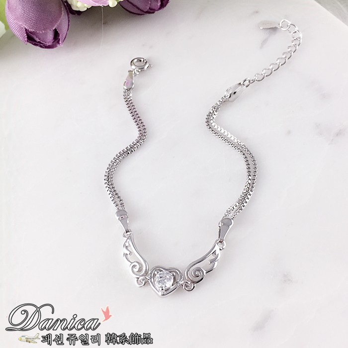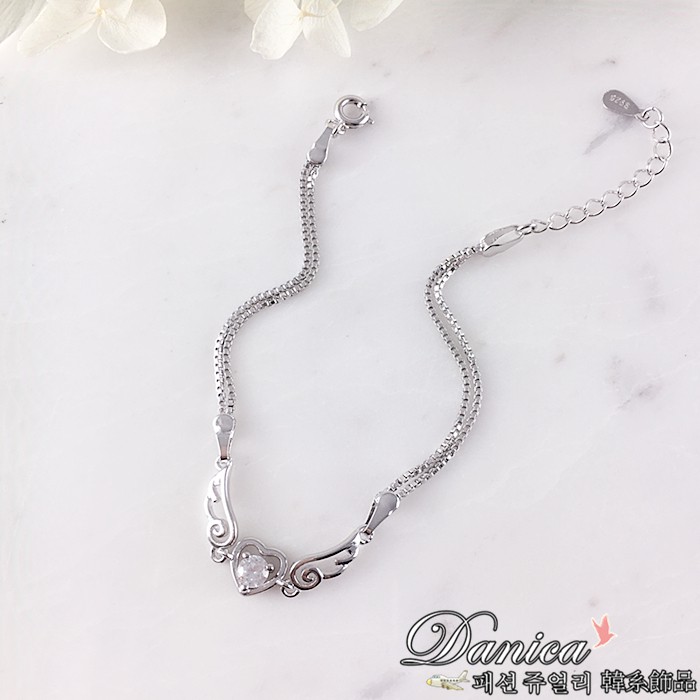 手鍊 熱賣專櫃CZ鑽質感閃亮微鑲天使之翼心鍊鋯石手鍊K3144 台灣出貨 Danica 韓系飾品 韓國連線銀底白鑽Danica 韓系飾品 耳環
