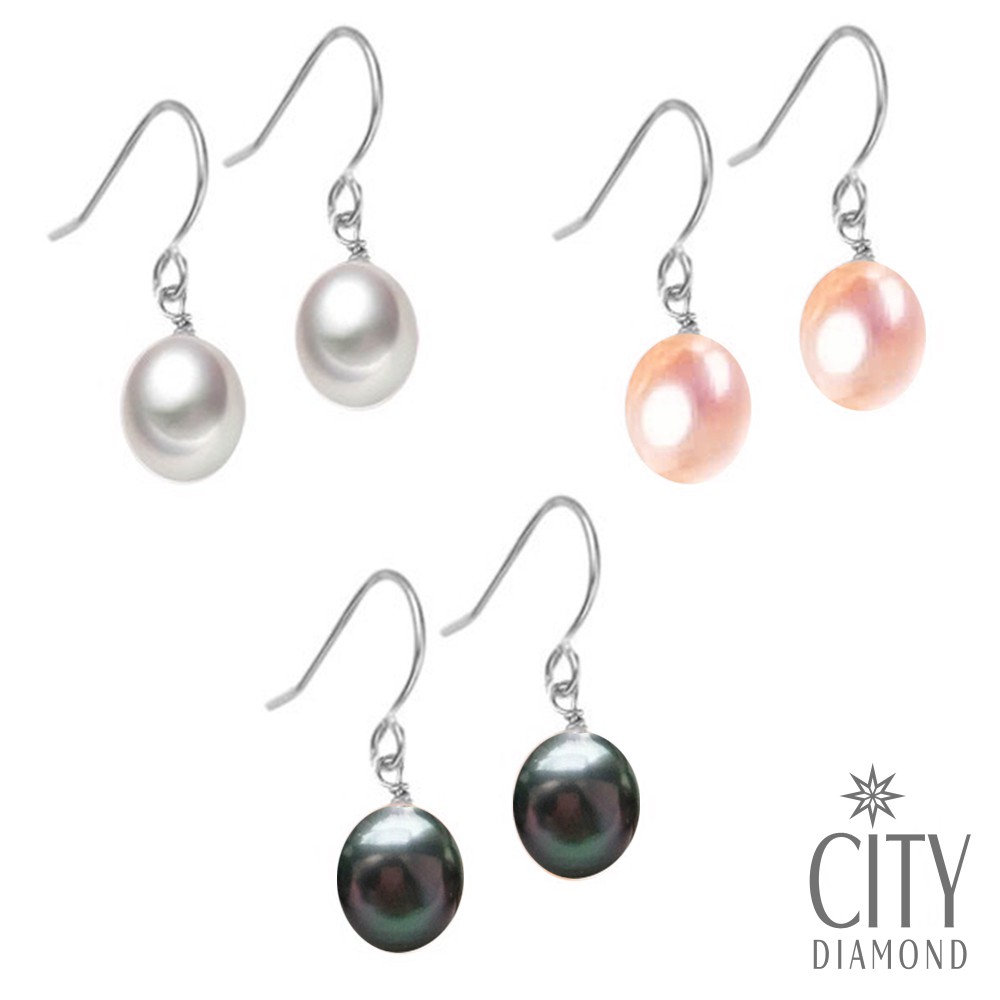 City Diamond引雅 【手作設計系列 】天然珍珠 橘珍珠 黑珍珠垂掛式耳環純白|粉橘|黑JadeCity Diamond引雅鑽石珠寶