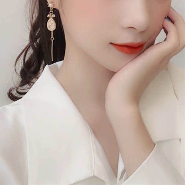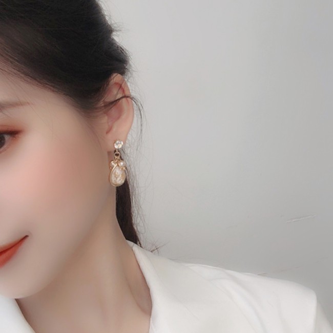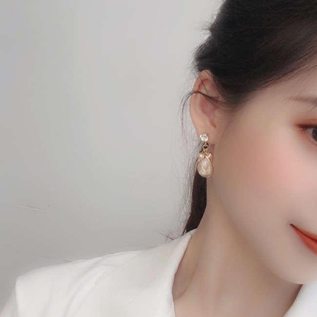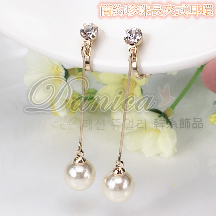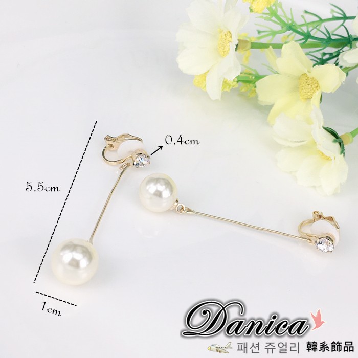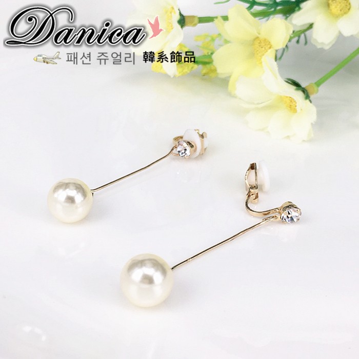 夾式耳環 韓國女神時尚氣質甜美百搭珍珠水鑽垂墜耳環 K92462 台灣出貨 Danica 韓系飾品 韓國連線如圖夾式(無耳洞配戴)Danica 韓系飾品 耳環