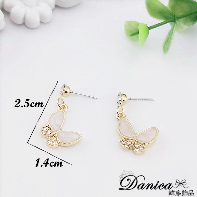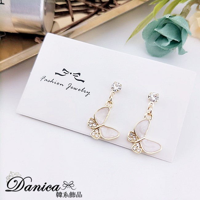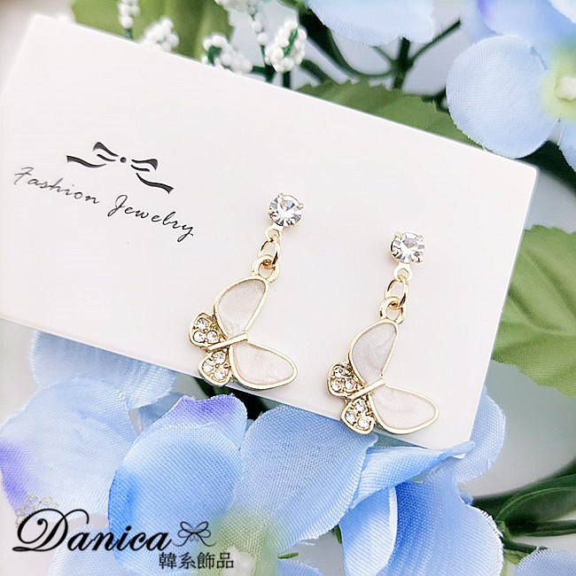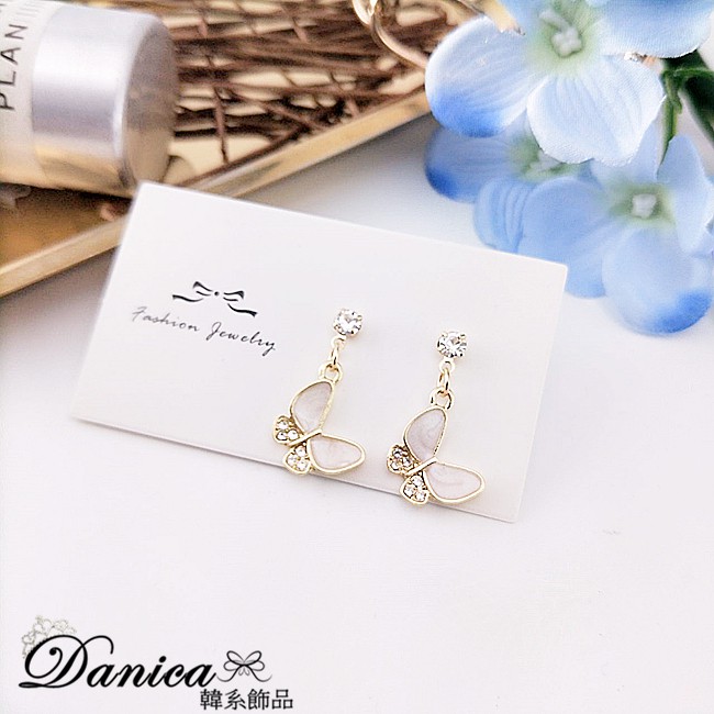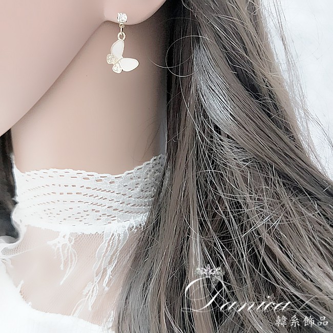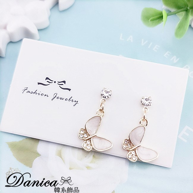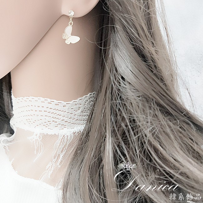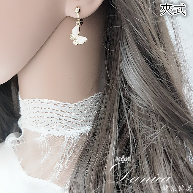 925銀針 夾式耳環 韓國女神氣質甜美百搭蝴蝶紛飛水鑽耳環 夾式耳環 K93657 批發價 Danica 韓系飾品金色針式|金色夾式(無耳洞配戴)Danica 韓系飾品 耳環