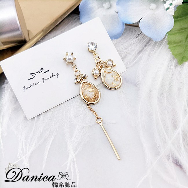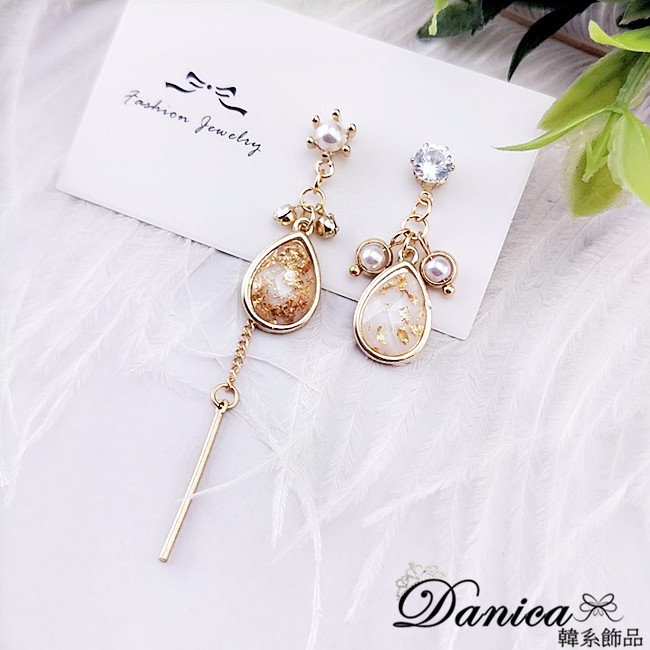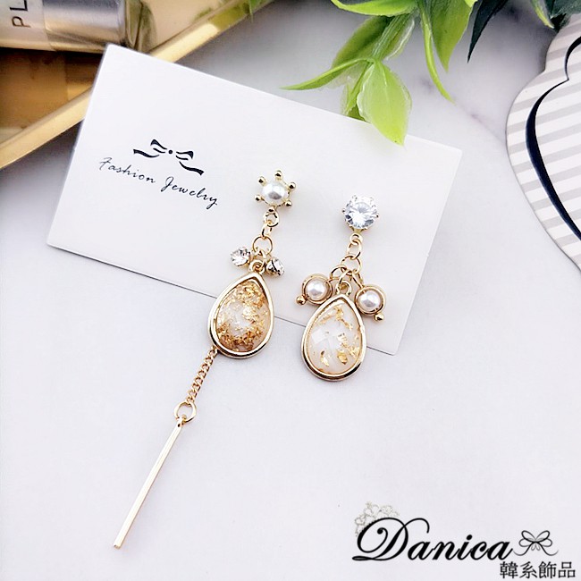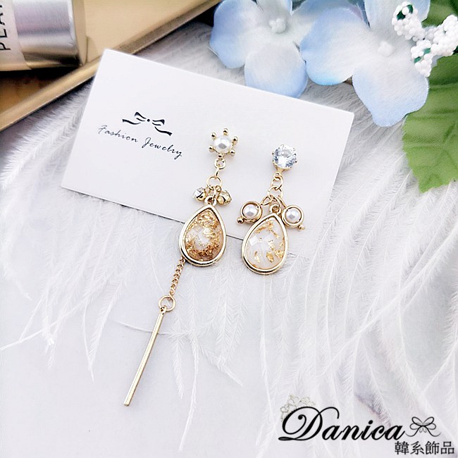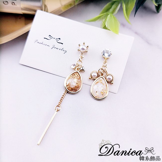 925銀針 韓國女神氣質法式浪漫幾何水滴鋯石不對稱耳環 垂墜耳環 K93518 批發價 Danica 韓系飾品如圖不對稱針式Danica 韓系飾品 耳環