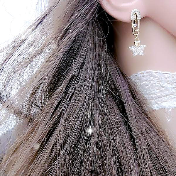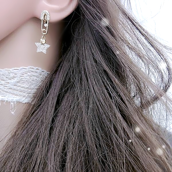925銀針 夾式耳環 韓國女神氣質浪漫極光星星水晶垂墜耳環 K94115 台灣出貨 Danica 韓系飾品 韓國連線