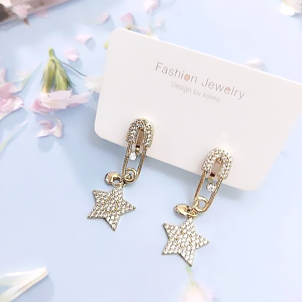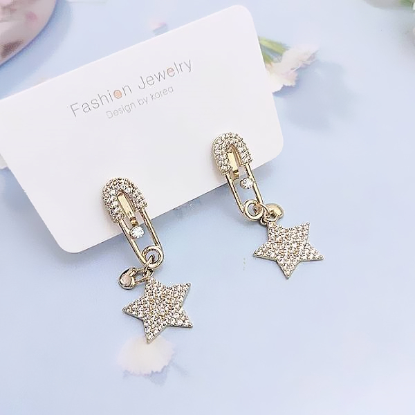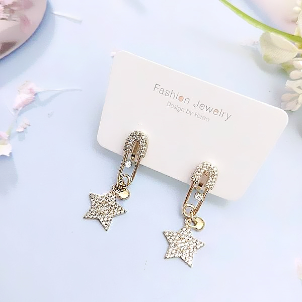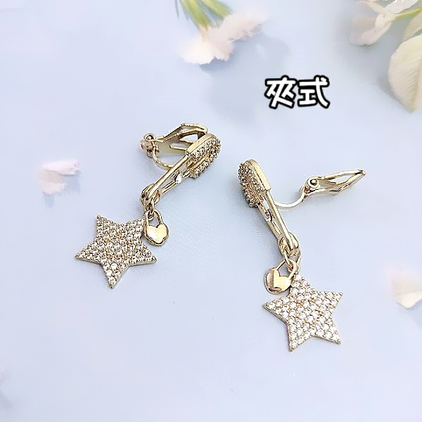 夾式耳環 韓國女神氣質設計款微鑲獨特復古別針星星鋯石垂墜耳環 K94105 台灣出貨 Danica 韓系飾品仿古金夾式(無耳洞配戴)Danica 韓系飾品 耳環