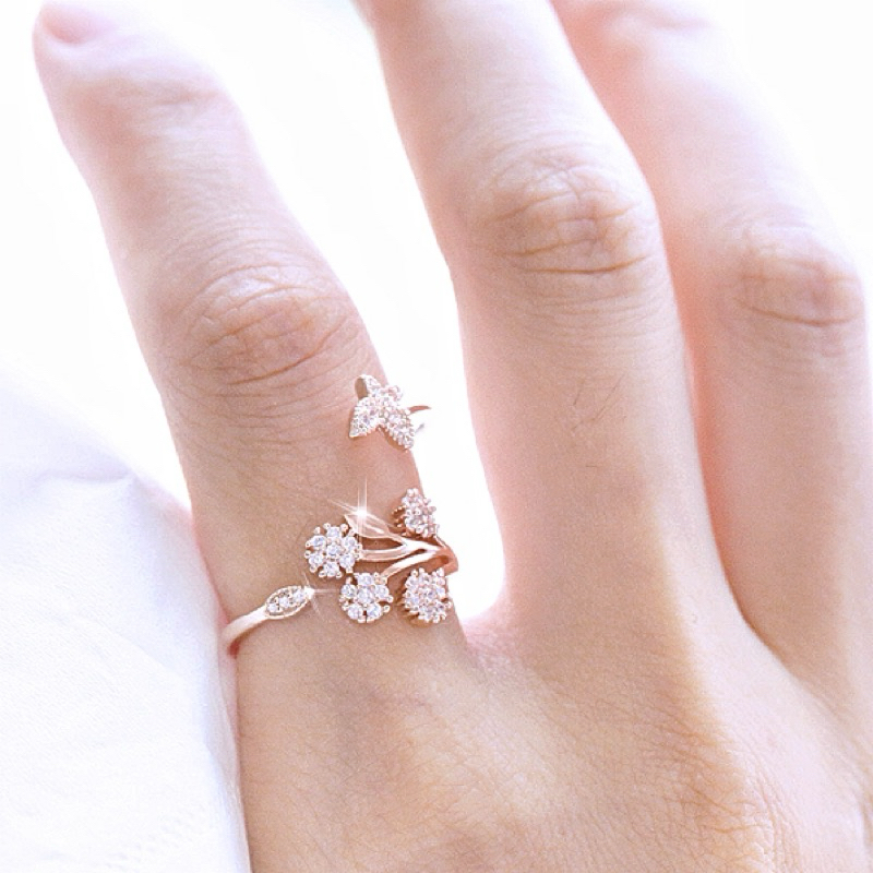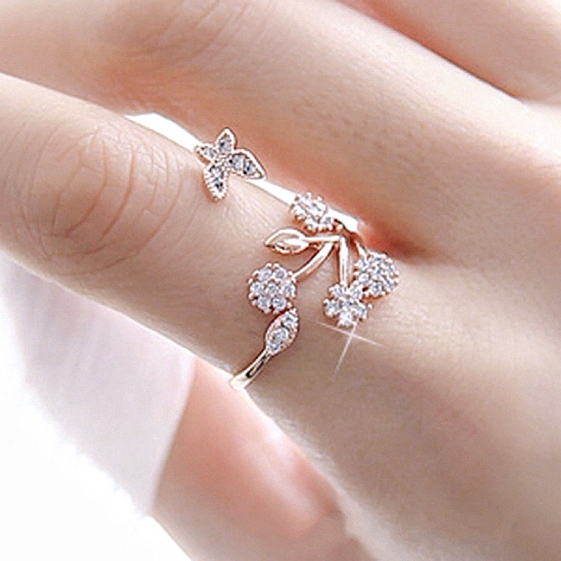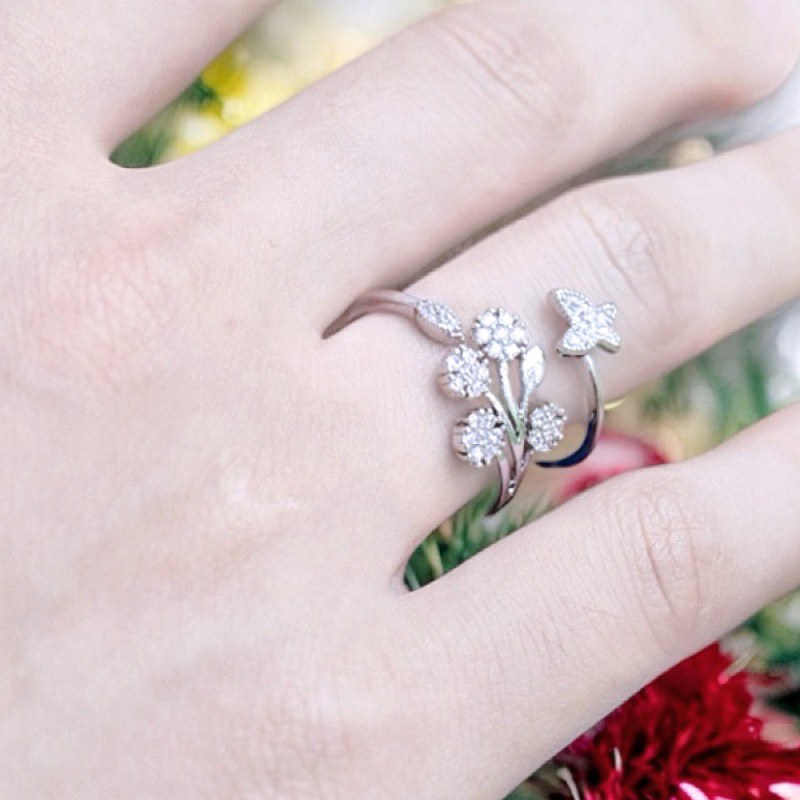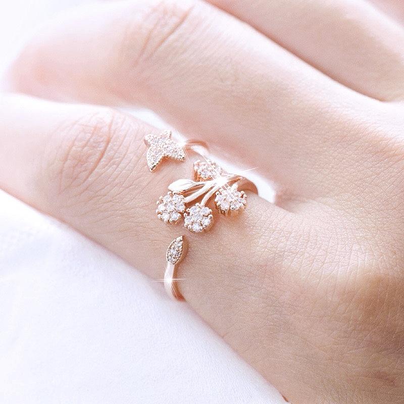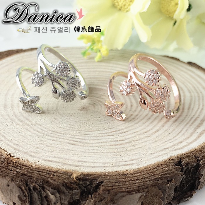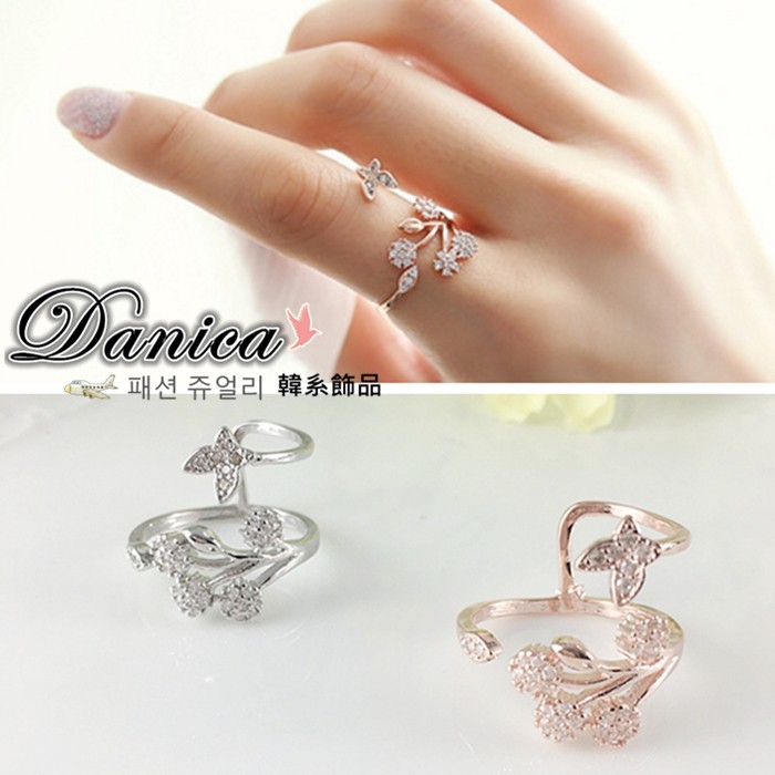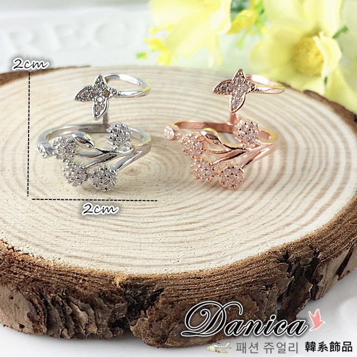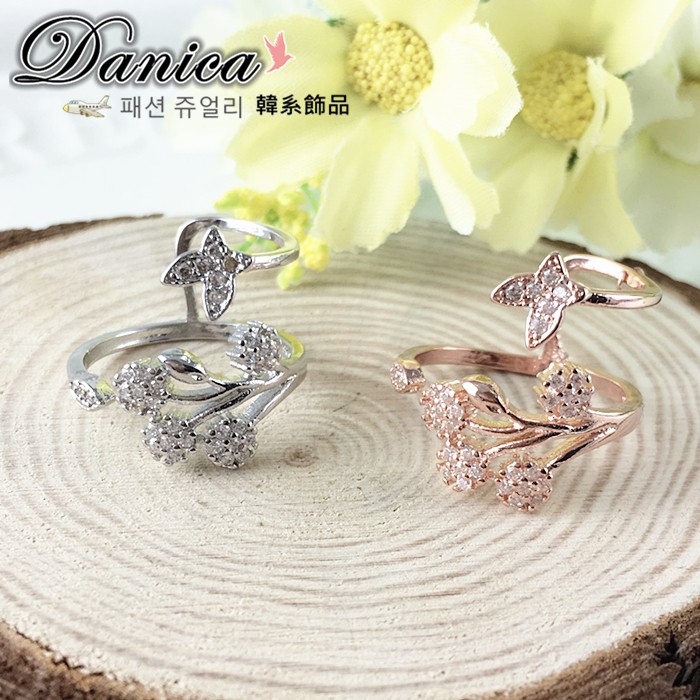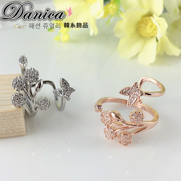戒指 韓國女神氣質甜美微鑲花朵蝴蝶飛舞鋯石開口戒指K5207 單個價 Danica 韓系飾品 韓國連線銀色|玫瑰金Danica 韓系飾品 耳環