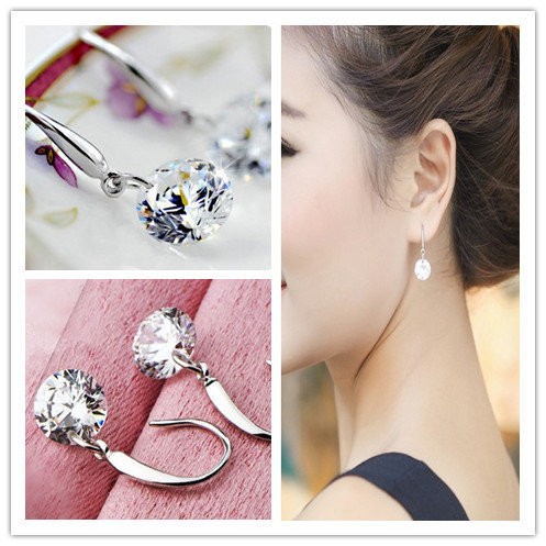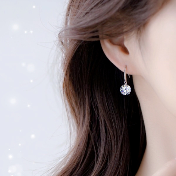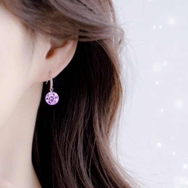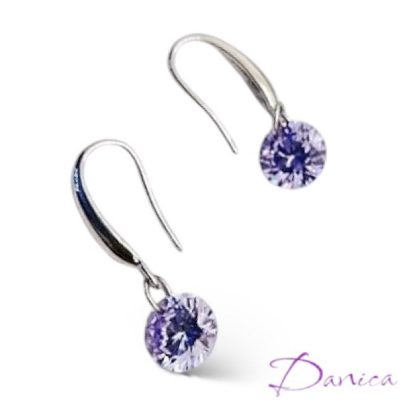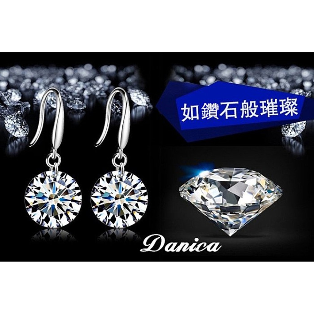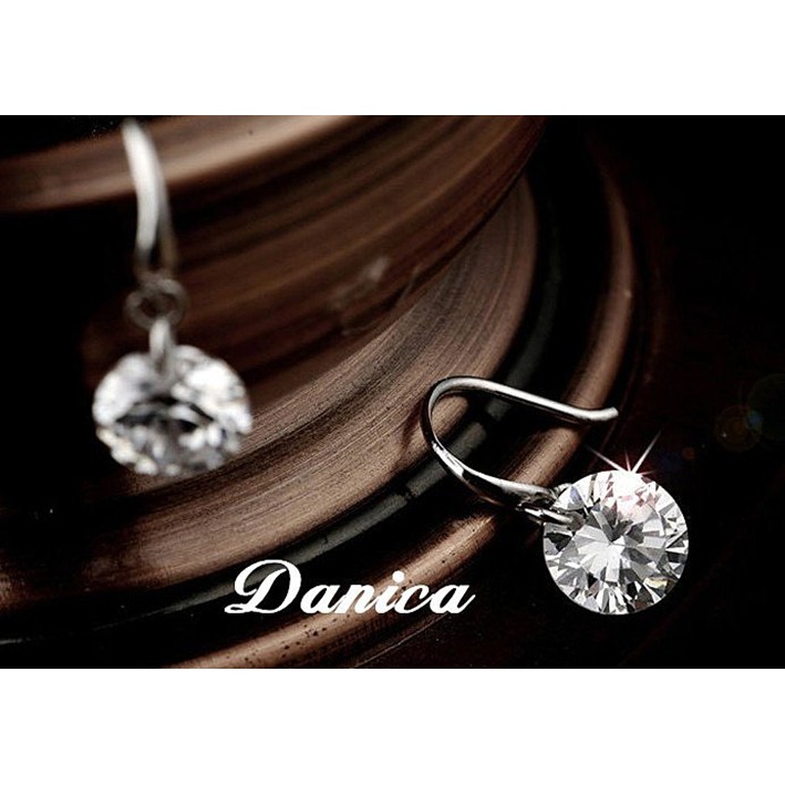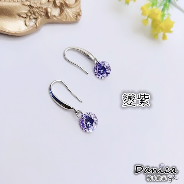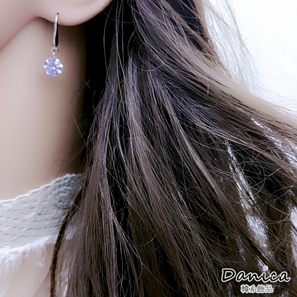 耳勾 熱賣專櫃CZ鑽氣質名媛8MM閃亮鋯石八心八箭垂墜耳環 K92202 台灣出貨 Danica 韓系飾品如圖耳勾針式|變紫耳勾針式Danica 韓系飾品 耳環