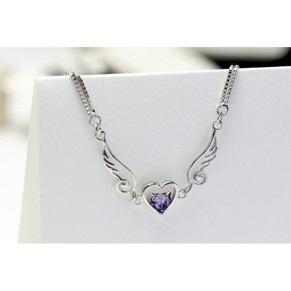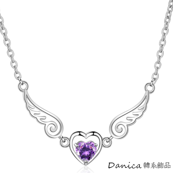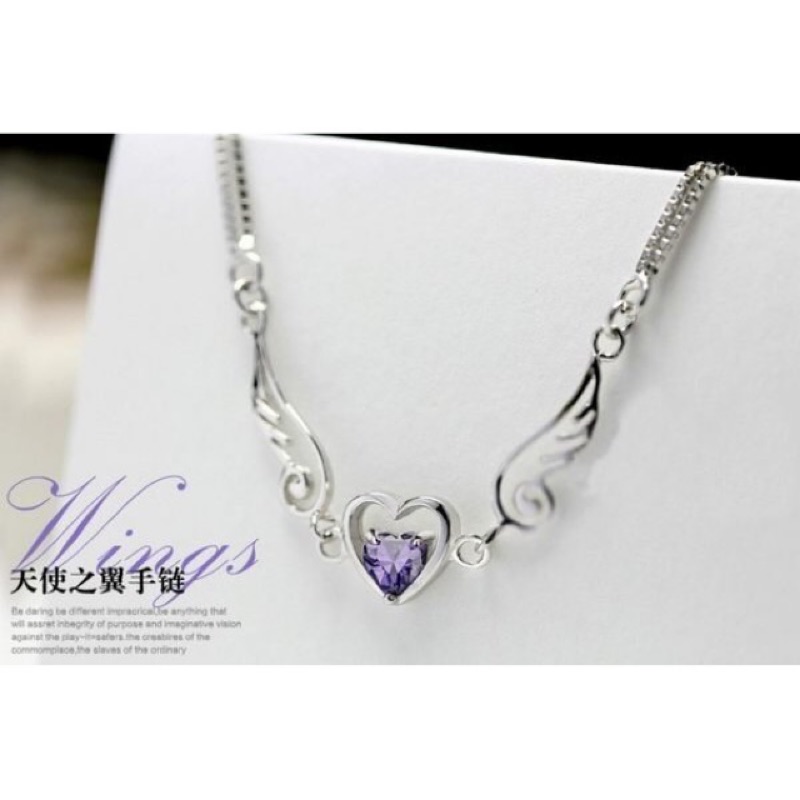 手鍊 熱賣專櫃CZ鑽質感天使之翼愛心鍊紫鋯石手鍊 Z2002 台灣出貨 Danica 韓系飾品銀底紫色Danica 韓系飾品 耳環