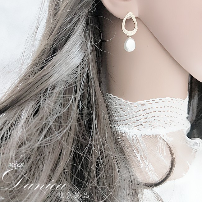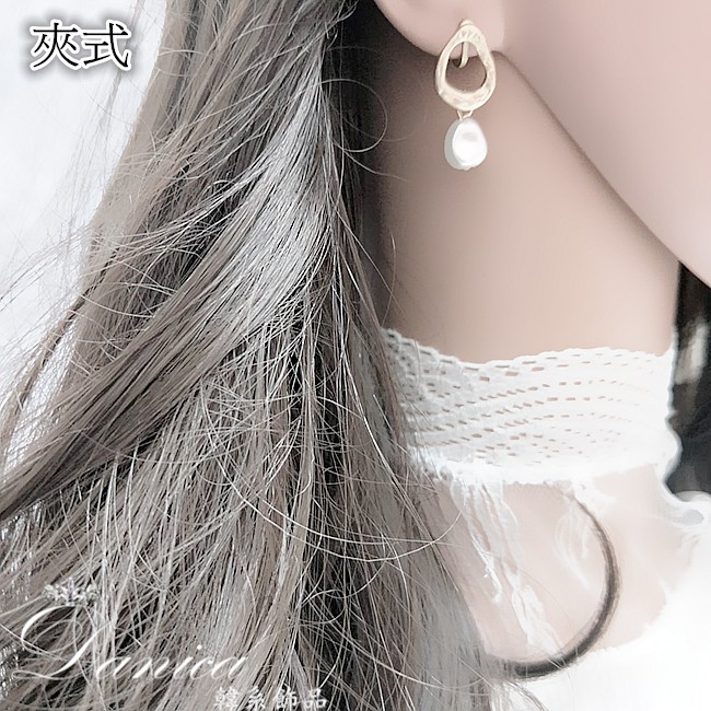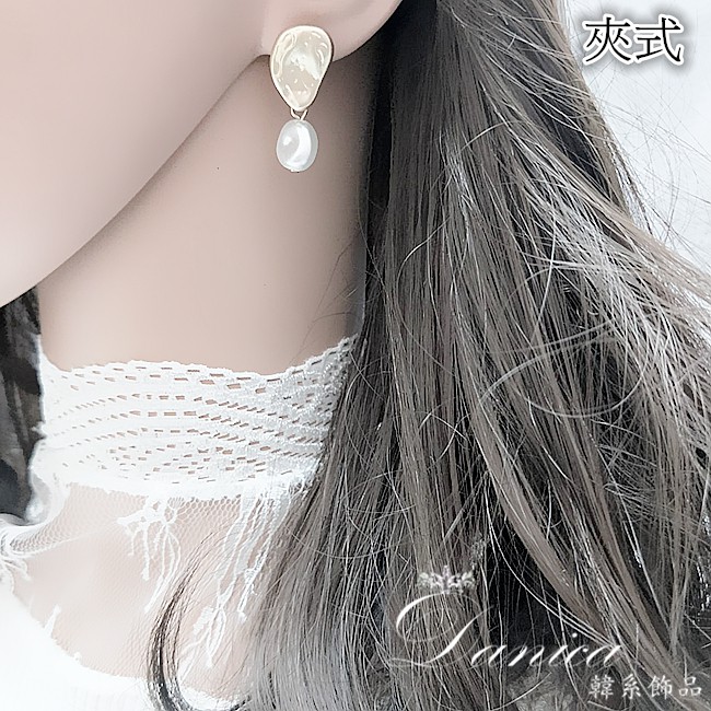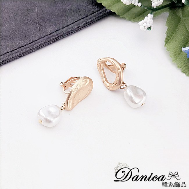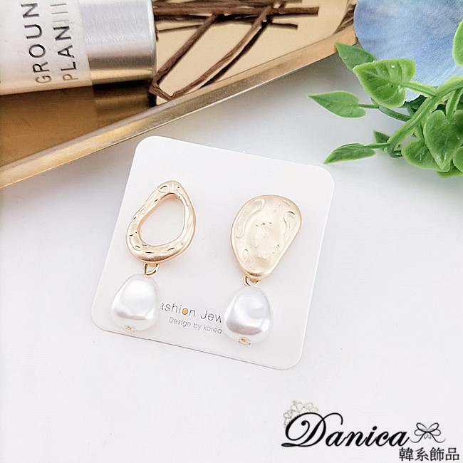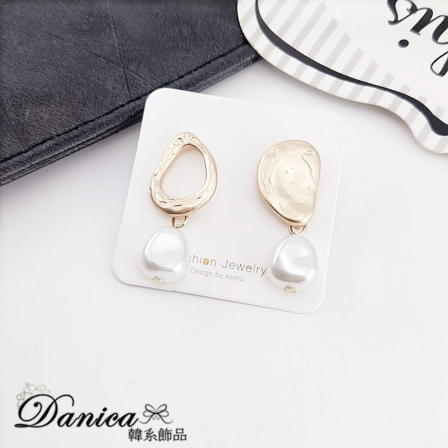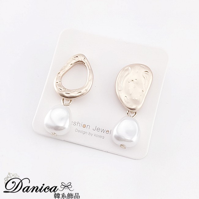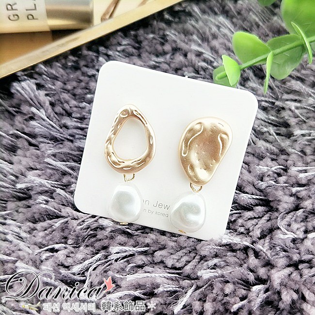 針式 夾式耳環 韓國時尚個性幾何不規則珍珠不對稱耳環 垂墜耳環K93656 台灣出貨 Danica 韓系飾品金色不對稱針式|金色不對稱夾式(無耳洞配戴)Danica 韓系飾品 耳環