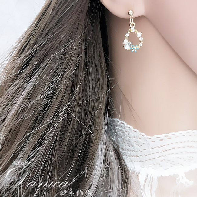 925銀針 夾式耳環 韓國少女氣質花朵花圈水鑽耳環 K93014 台灣出貨 Danica 韓系飾品 韓國連線首圖夾式(無耳洞配戴)|首圖925銀針|甜甜圈珍珠針式|甜甜圈珍珠夾式(無耳洞配戴)|愛心藍鑽針式|愛心蛋白鑽針式|愛心粉鑽針式|愛心藍鑽夾式(無耳洞配戴)|愛心蛋白鑽夾式(無耳洞配戴)|愛心粉鑽夾式(無耳洞配戴)|水滴藍綠針式|水滴粉色針式|水滴白色針式|水滴藍綠夾式(無耳洞配戴)|水滴粉色夾式(無耳洞配戴)|水滴白色夾式(無耳洞配戴)Danica 韓系飾品 耳環