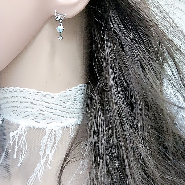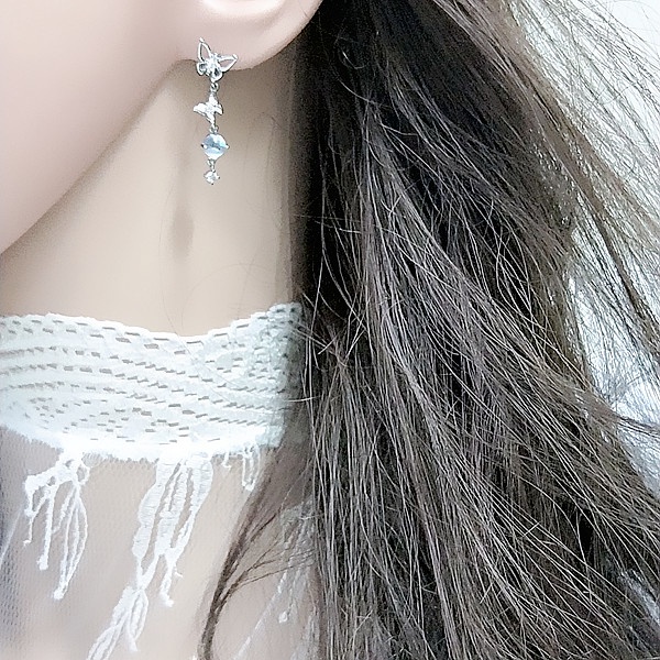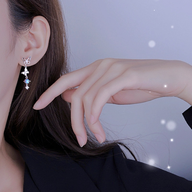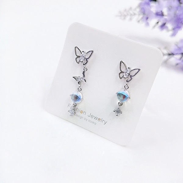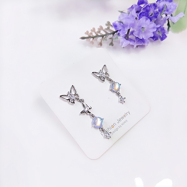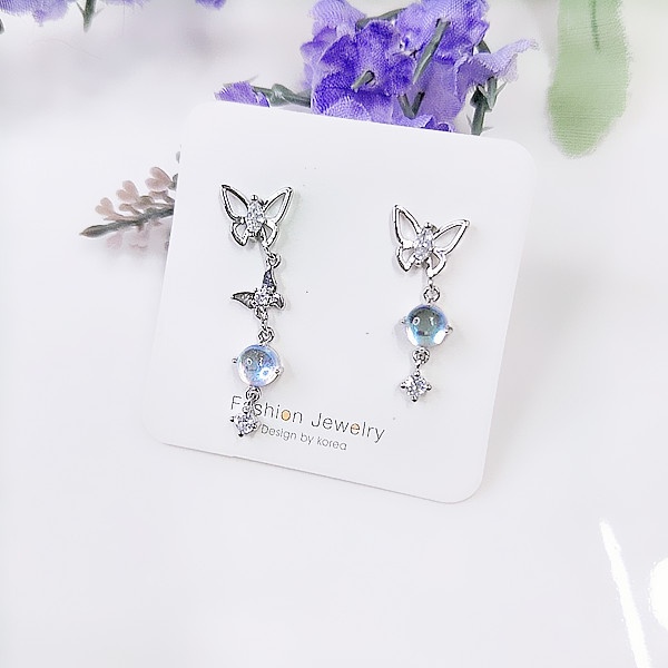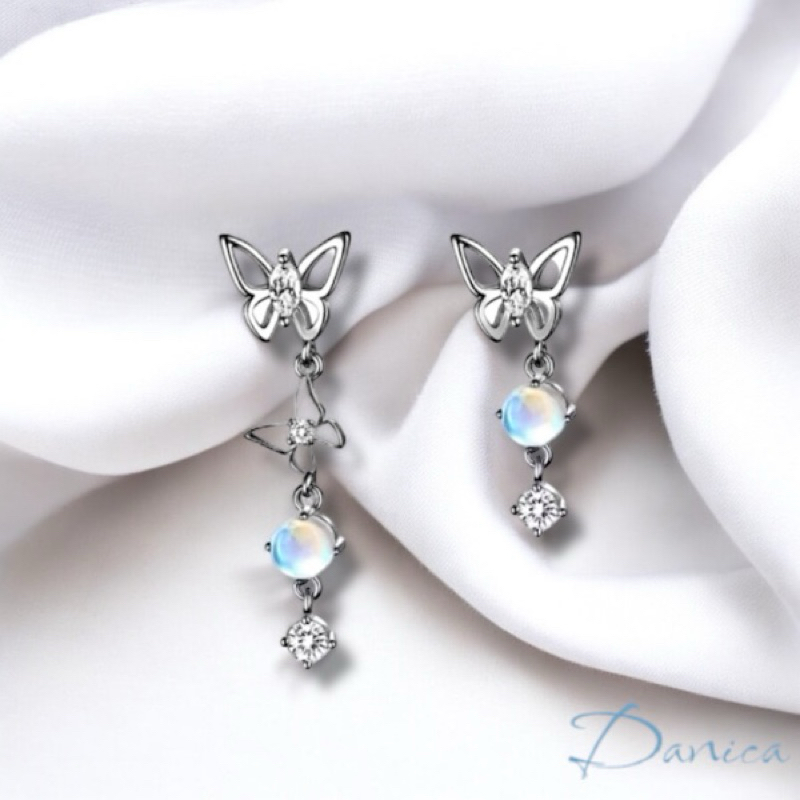 925銀針 韓國仙女浪漫微鑲飛舞蝴蝶鋯石垂墜耳環 不對稱耳環 A0025 台灣出貨 Danica 韓系飾品 韓國連線如圖不對稱針式Danica 韓系飾品 耳環