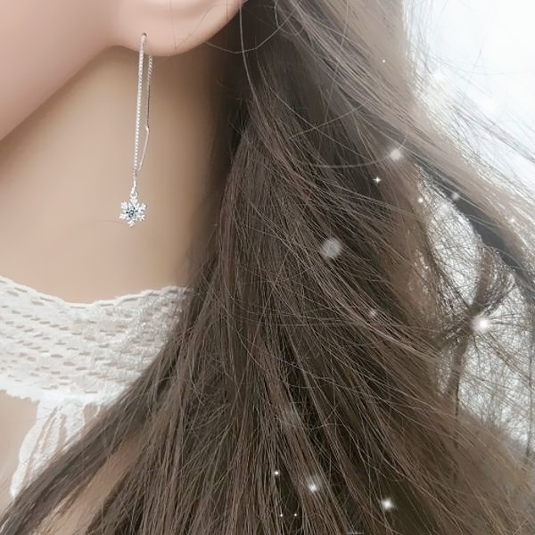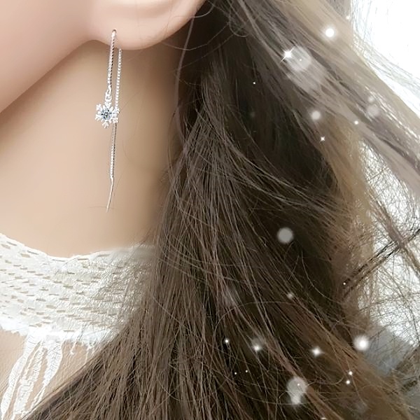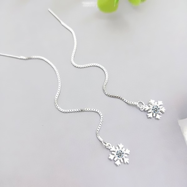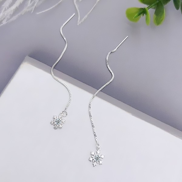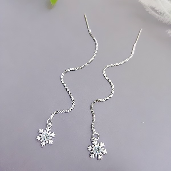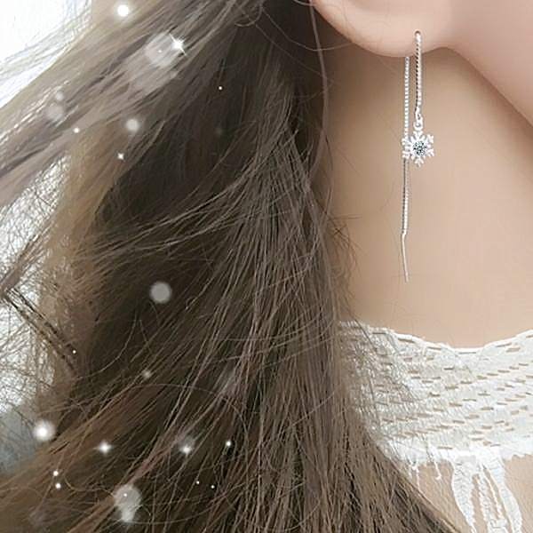 925銀針 耳線 韓國女神氣質浪漫微鑲小巧雪花鋯石流蘇耳環 K93991 台灣出貨 Danica 韓系飾品銀色針式Danica 韓系飾品 耳環