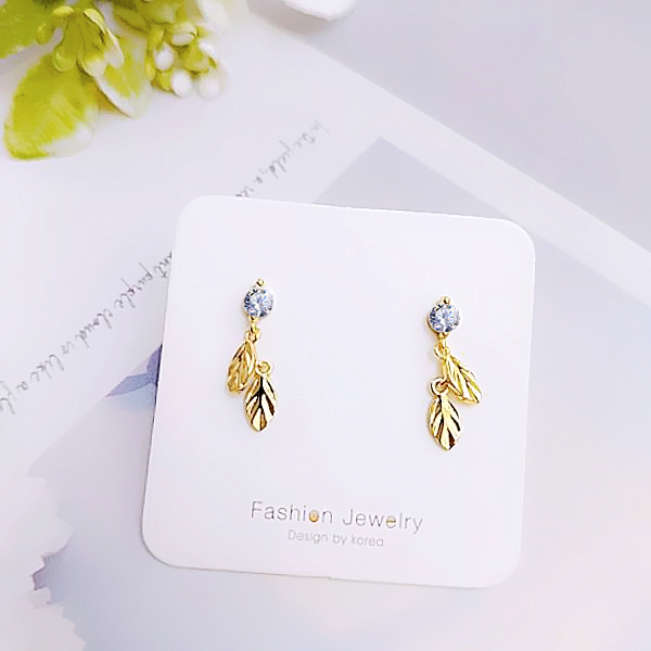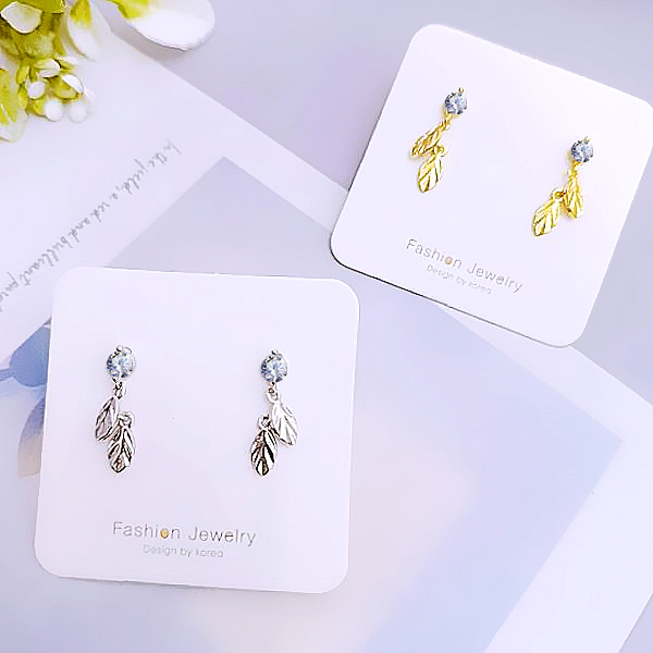 925銀針 夾式耳環 韓國小清新氣質浪漫微鑲葉子鋯石垂墜耳環 K94136 台灣出貨 Danica 韓系飾品金色針式|銀色針式|金色夾式(無耳洞配戴)|銀色夾式(無耳洞配戴)Danica 韓系飾品 耳環