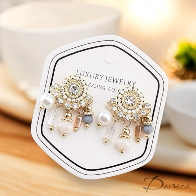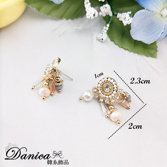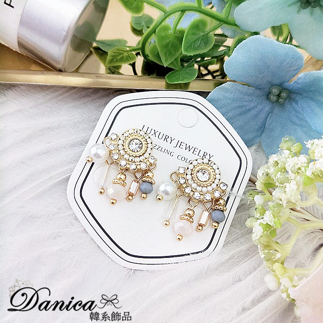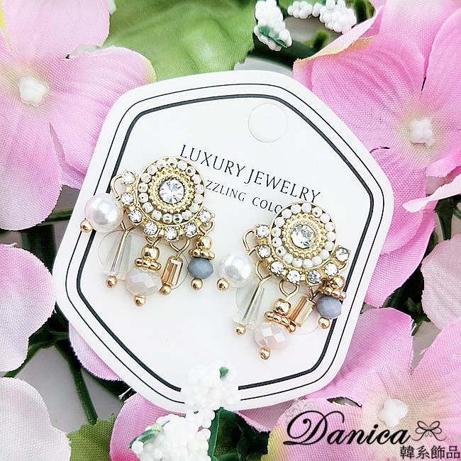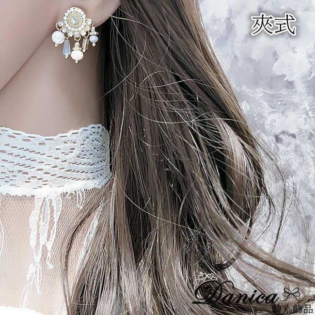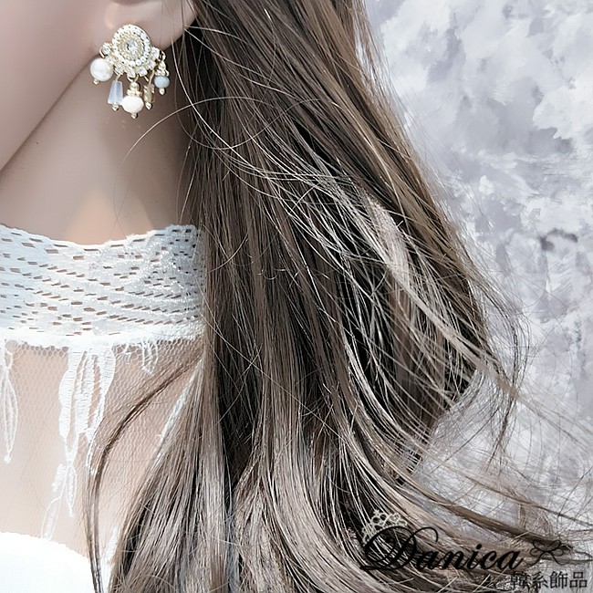 針式 韓國女神氣質浪漫巴洛克宮廷珍珠水鑽垂墜耳環 夾式耳環 K93451 台灣出貨Danica 韓系飾品針式|夾式(無耳洞配戴)Danica 韓系飾品 耳環