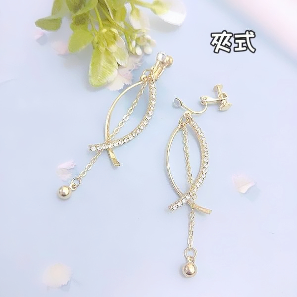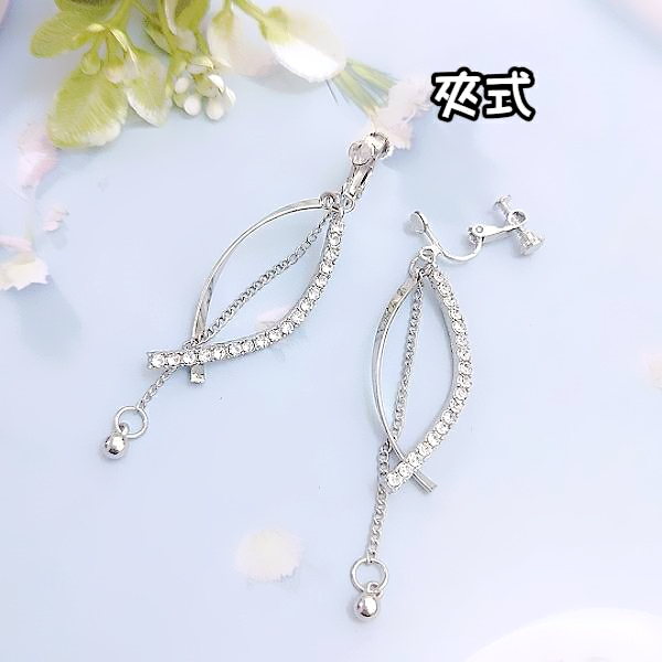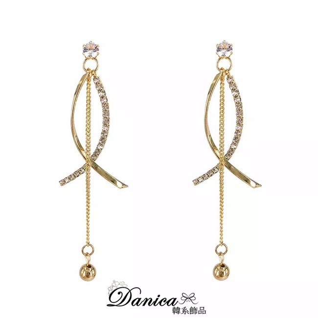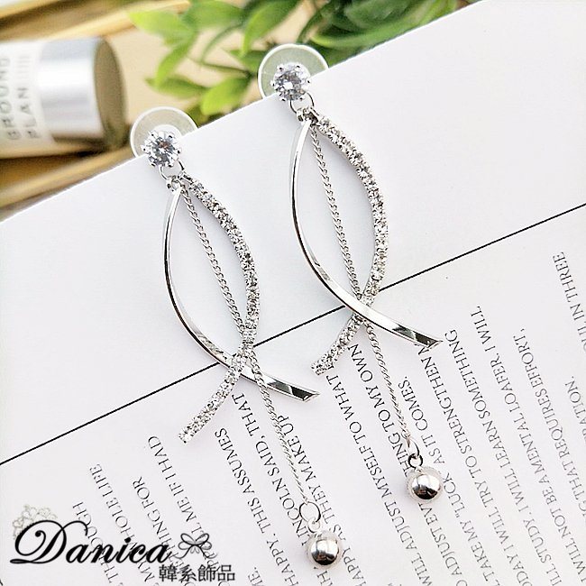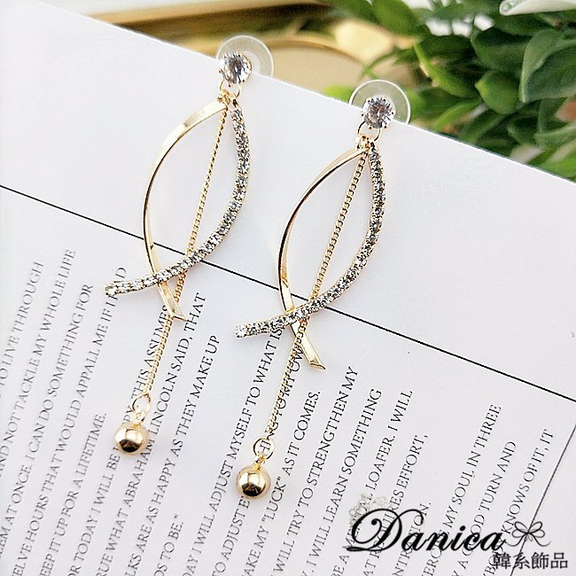 925銀針 夾式耳環 韓國氣質百搭設計款單鑽幾何流線水鑽流蘇耳環 K93386 批發價 Danica 韓系飾品 韓國連線銀色針式|金色針式|銀色夾式(無耳洞配戴)|金色夾式(無耳洞配戴)Danica 韓系飾品 耳環