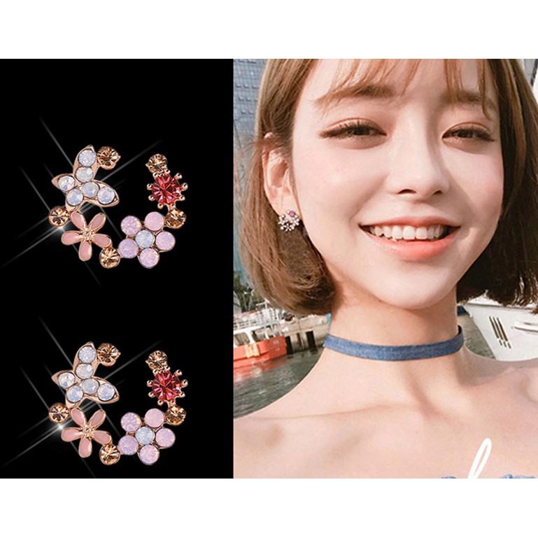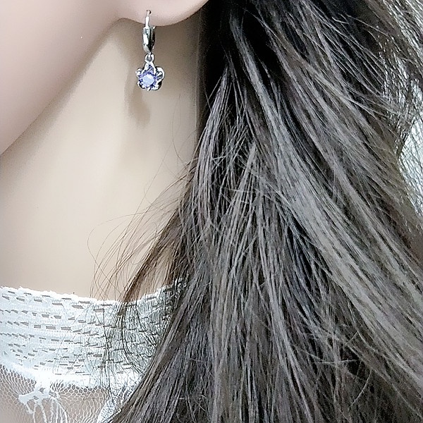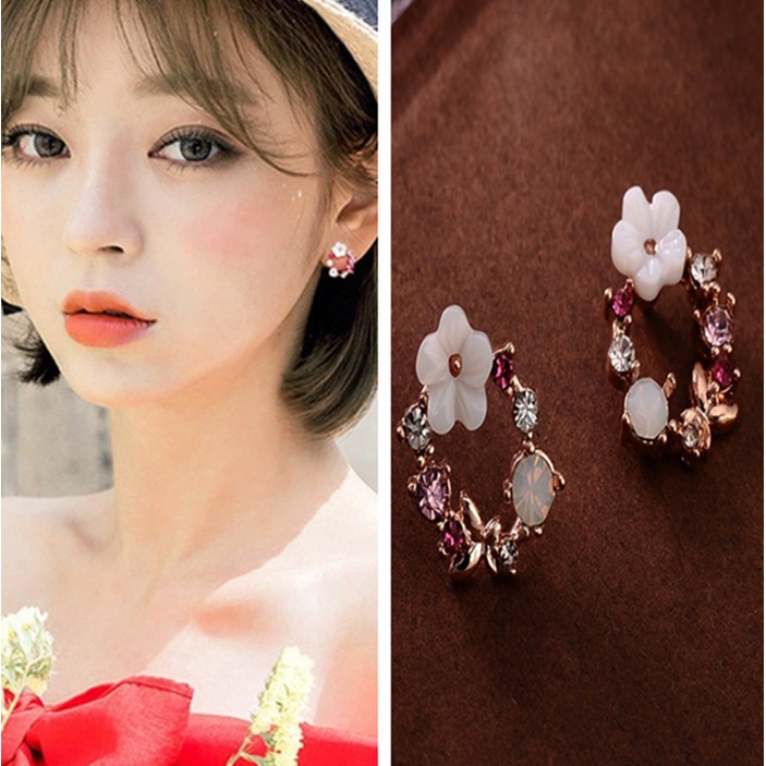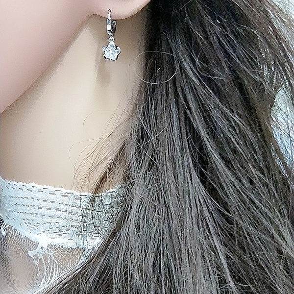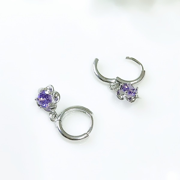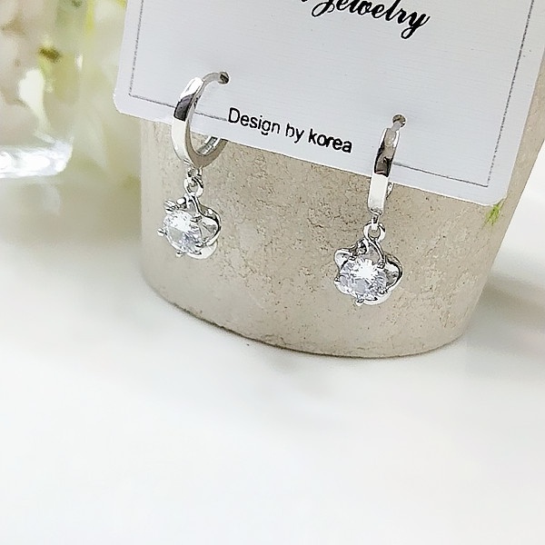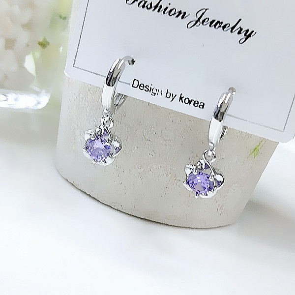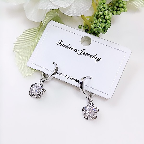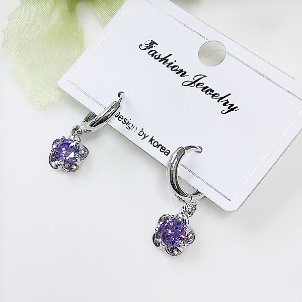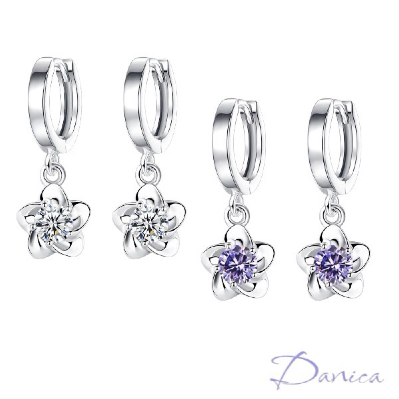 耳扣 針式 夾式耳環 韓國女神氣質百搭星光閃耀微鑲花朵鋯石垂墜耳環 A0023 台灣出貨 Danica 韓系飾品白鑽耳扣針式|紫鑽耳扣針式|白鑽夾式(無耳洞配戴)|紫鑽夾式(無耳洞配戴)Danica 韓系飾品 耳環