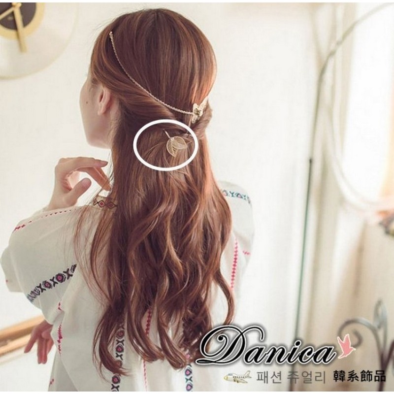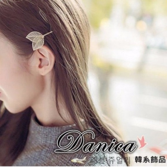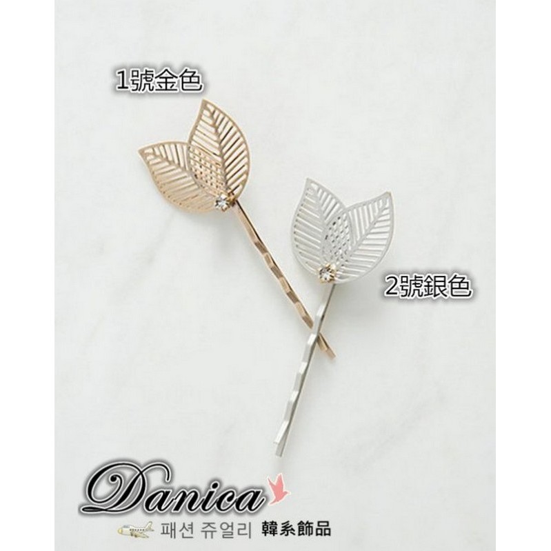 髮夾 韓國少女氣質甜美百搭葉子水鑽髮夾 一字夾(2色) K7619 單個價 Danica 韓系飾品 韓國連線金色|銀色Hair Clips & Hair PinsDanica 韓系飾品 耳環