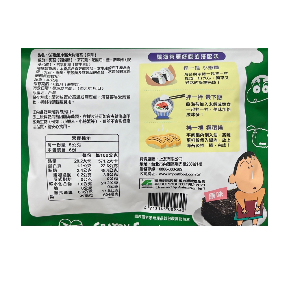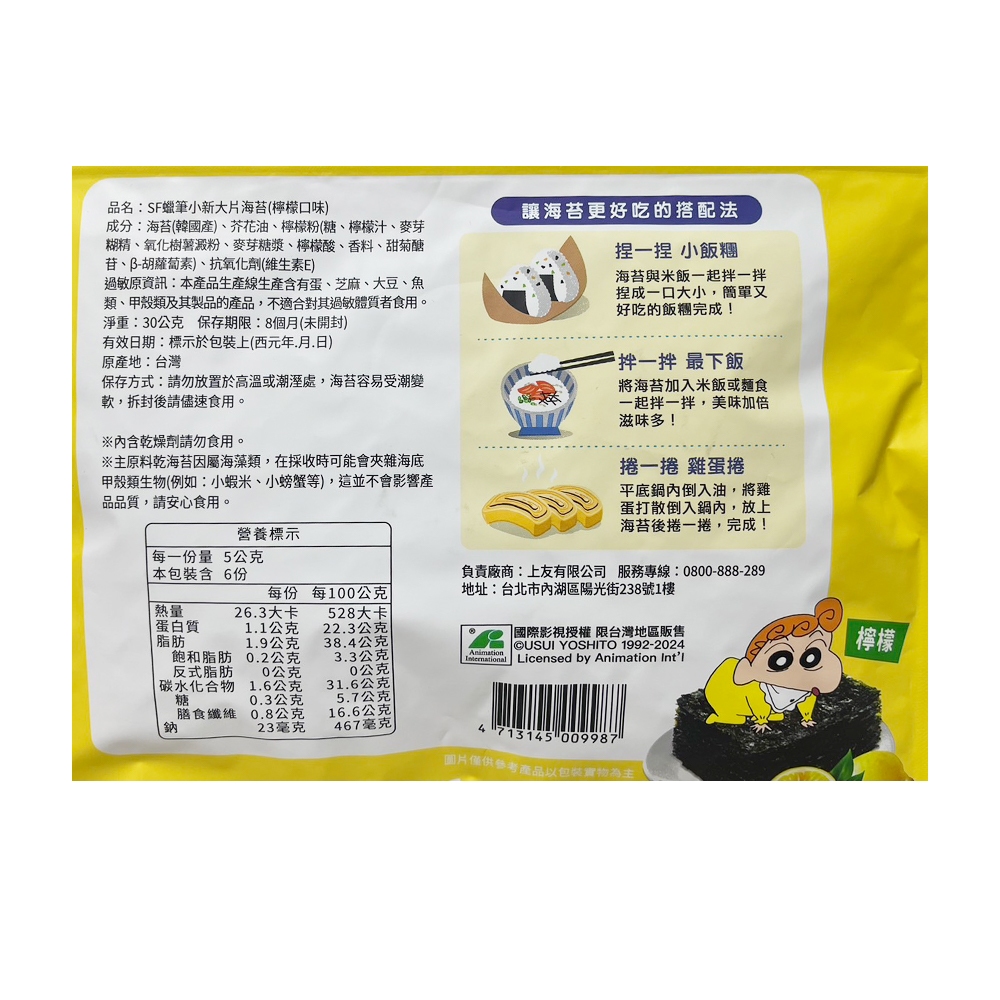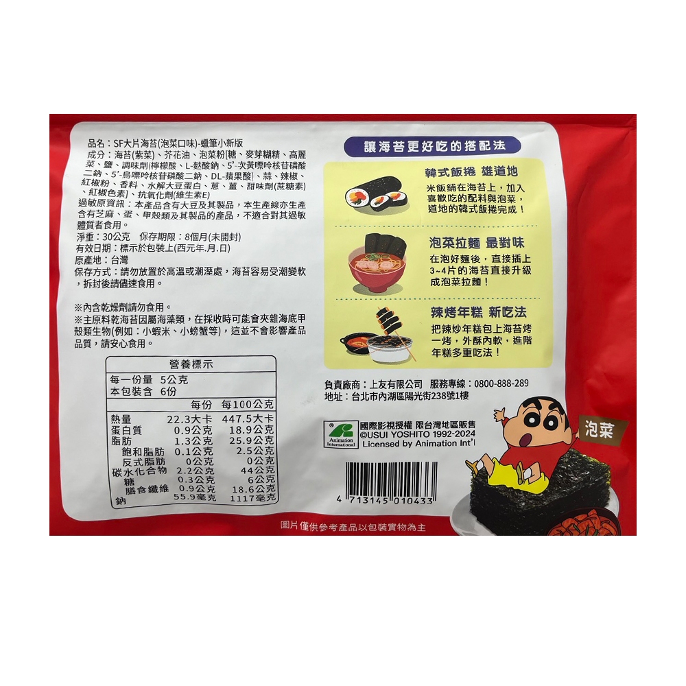 SF 蠟筆小新 大片海苔 30g 海苔 海苔片 蠟筆小新海苔 蠟筆小新大片海苔原味 2025.11|檸檬|泡菜 2026.1Seaweedcuzio