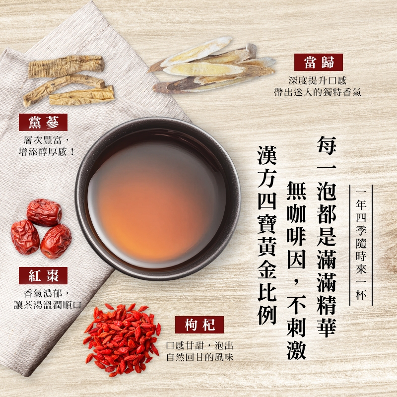 「365元氣四寶茶」|屬於全家人的茶|漢方黃金比例|枸杞+紅棗+黨蔘+當歸四寶茶1包(10入)Traditional & Herbal DrinksCHILL愛吃 佳美 品牌直營店
