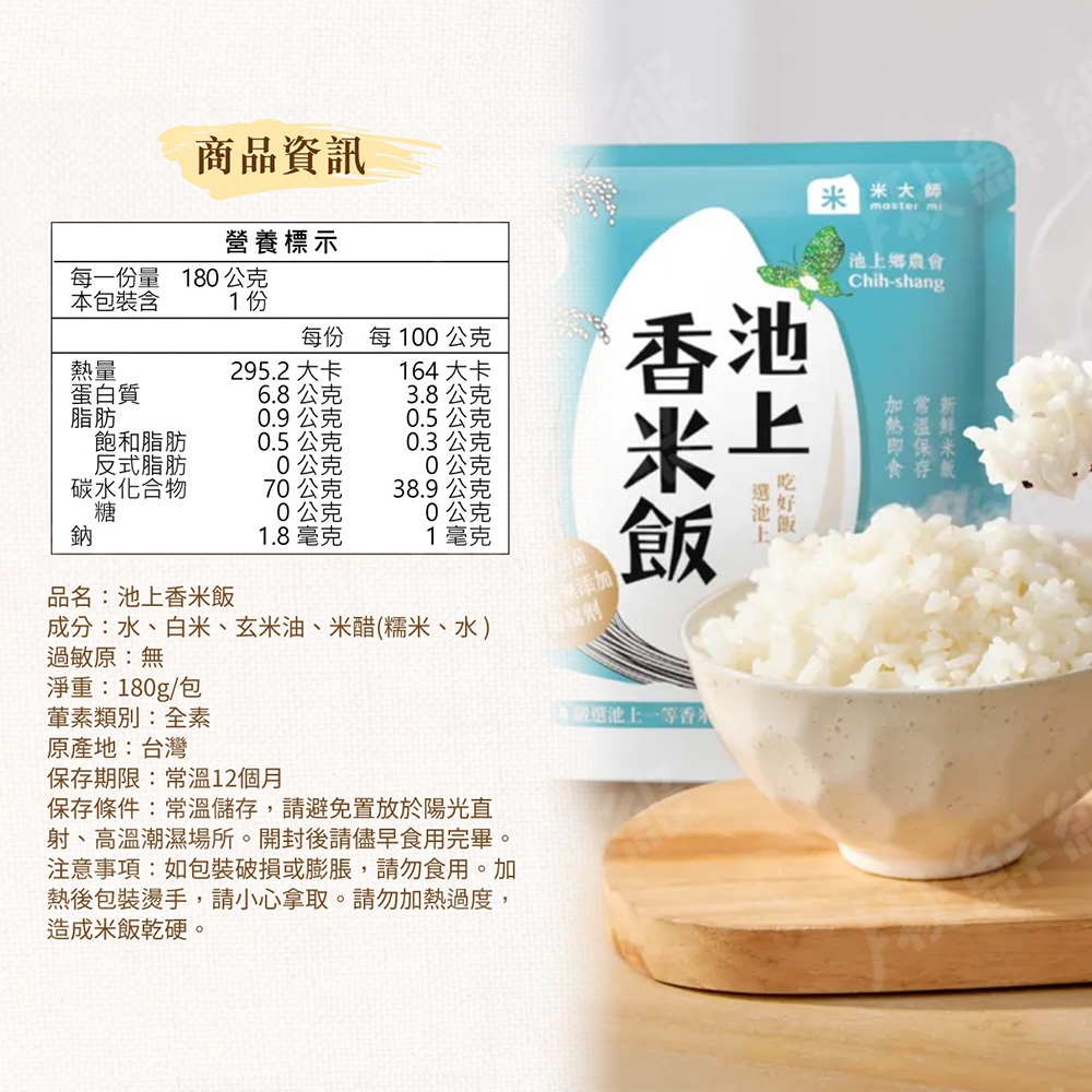 米大師 池上 糙米飯 香米飯 180g/包 加熱即食 即食飯 熟米飯 高溫滅菌零添加 池上鄉農會池上香米飯180g|池上糙穀飯180gInstant Rice & PorridgeDA量販店