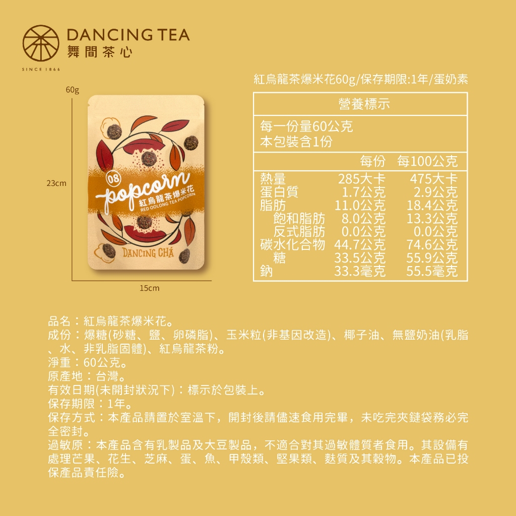【舞間茶心】紅烏龍茶爆米花60g|紅茶爆米花 烏龍茶爆米花 茶口味爆米花 茶風味爆米花 爆米花代工 茶點心 露營點心【舞間茶心】紅烏龍茶爆米花60g|紅茶爆米花 烏龍茶爆米花 茶口味爆米花 茶風味爆米花 爆米花代工 茶點心 露營點心PopcornDancingTea舞間茶心|甜點烘焙店指定茶粉品牌|烘焙老師推薦|爆米花冰淇淋