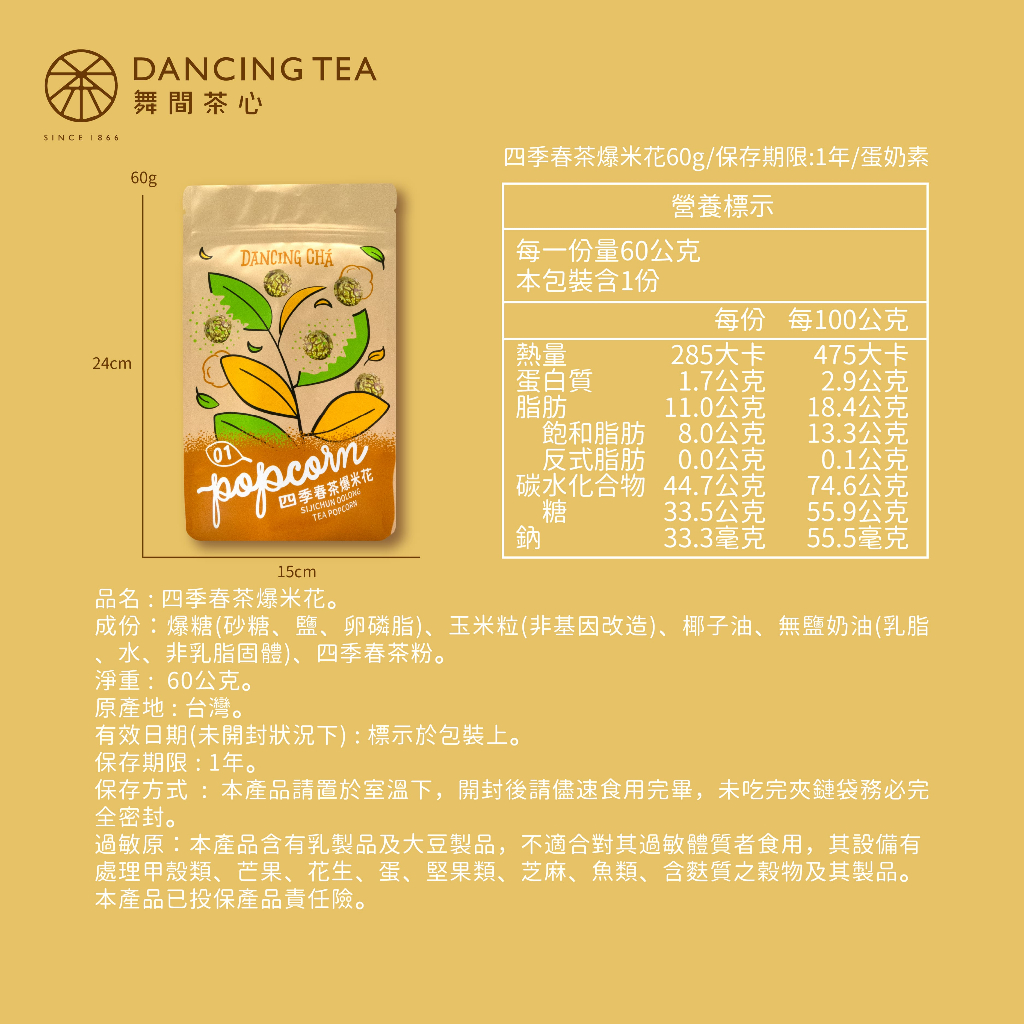 【舞間茶心】四季春茶爆米花60g|蛋奶素甜點 蛋奶素爆米花 婚禮小物 辦公室下午茶 辦公室團購 小朋友點心 同樂會 聚餐【舞間茶心】四季春茶爆米花60g|蛋奶素甜點 蛋奶素爆米花 婚禮小物 辦公室下午茶 辦公室團購 小朋友點心 同樂會 聚餐PopcornDancingTea舞間茶心|甜點烘焙店指定茶粉品牌|烘焙老師推薦|爆米花冰淇淋
