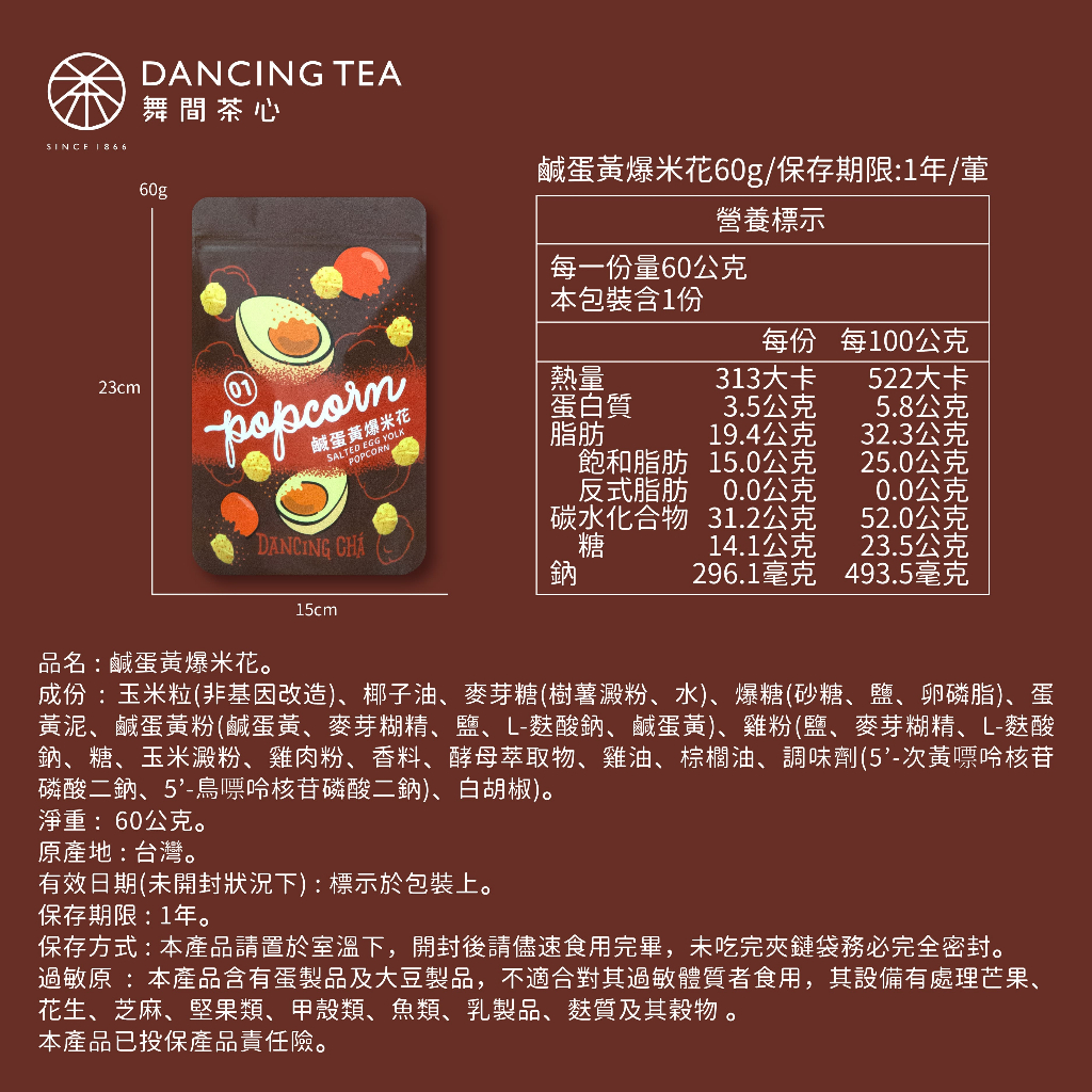 【舞間茶心】鹹蛋黃爆米花60g|滿額再贈1包|葷素|氣爆蘑菇型|鹹爆米花|網紅團購|婚禮小物|伴手禮|下午茶 零食【舞間茶心】鹹蛋黃爆米花60g|滿額再贈1包|葷素|氣爆蘑菇型|鹹爆米花|網紅團購|婚禮小物|伴手禮|下午茶 零食PopcornDancingTea舞間茶心|甜點烘焙店指定茶粉品牌|烘焙老師推薦|爆米花冰淇淋