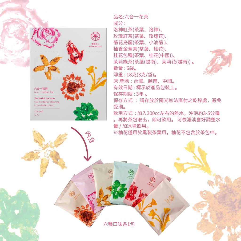 【舞間茶心】六合一花茶|三角立體茶包6入| SGS合格驗證|洛神紅茶|玫瑰紅茶|菊花烏龍|柚香金萱|桂花包種|茉莉綠茶【舞間茶心】六合一花茶|三角立體茶包6入| SGS合格驗證|洛神紅茶|玫瑰紅茶|菊花烏龍|柚香金萱|桂花包種|茉莉綠茶Tea & Tea BagsDancingTea舞間茶心|甜點烘焙店指定茶粉品牌|烘焙老師推薦|爆米花冰淇淋