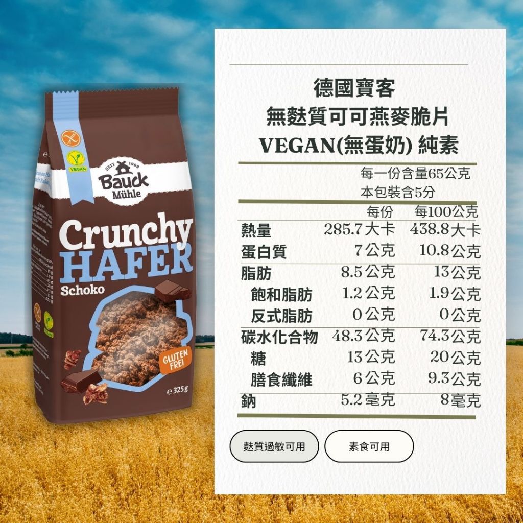 德國寶客無麩質可可燕麥脆片(無蛋奶) 325g(德虹無麩質園地)20260204Cereal, Granola & OatsDHI 德虹無麩質園地