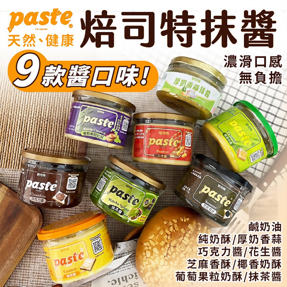 福汎 paste 焙司特抹醬 抹醬 果醬 巧克力 芝麻香酥 純奶酥 椰香奶酥 花生 芝麻 經典口味 早餐必備花生250g|芝麻香酥250g|椰香奶酥250g|葡萄果粒奶酥240g|厚奶香蒜160g|抹茶250g|純奶酥220g|純奶巧克力250g|鹹奶酥220gJam & SpreadDA量販店
