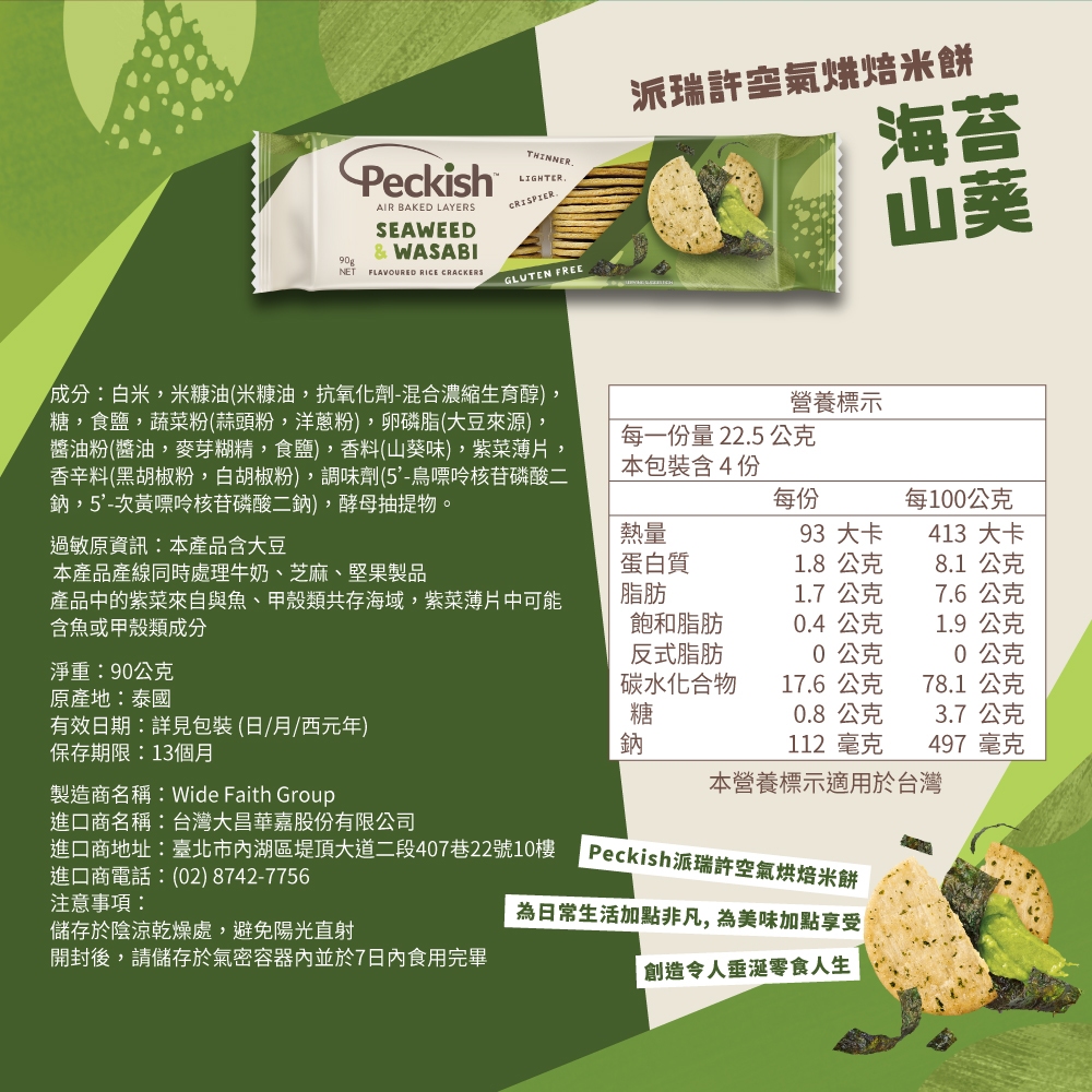 【Peckish】派瑞許 空氣烘焙米餅 海苔芥末 90g|台灣總代理直營1入Biscuits, Cookies & WafersDKSH 台灣大昌華嘉官方商城